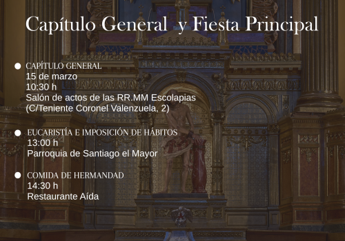 Se convoca capítulo general ordinario para el día 15 de marzo de 2026, a las 10:30 horas, en el salón de actos de las RR.MM. Escolapias (C/Teniente Coronel Valenzuela)