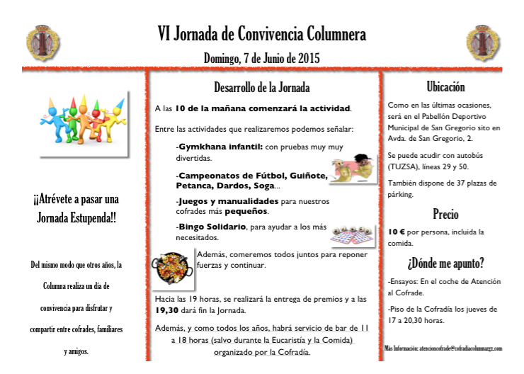 ¡Anímate a pasar un día divertido y compartirlo entre cofrades, familiares y amigos!