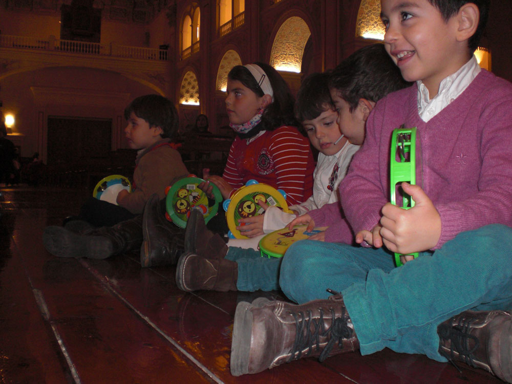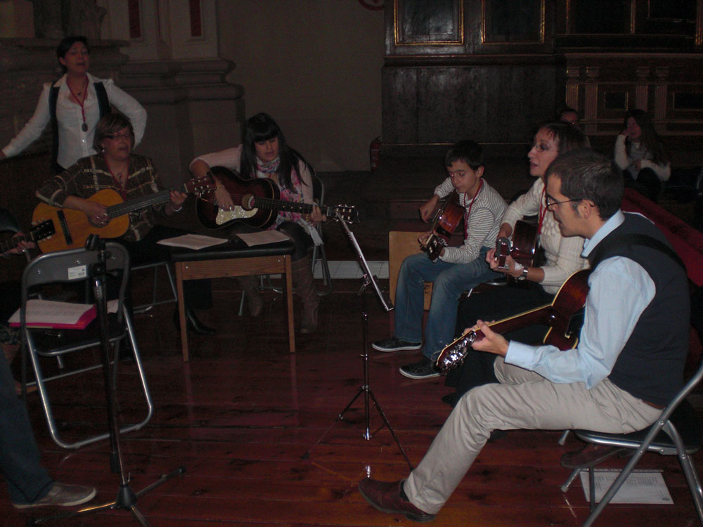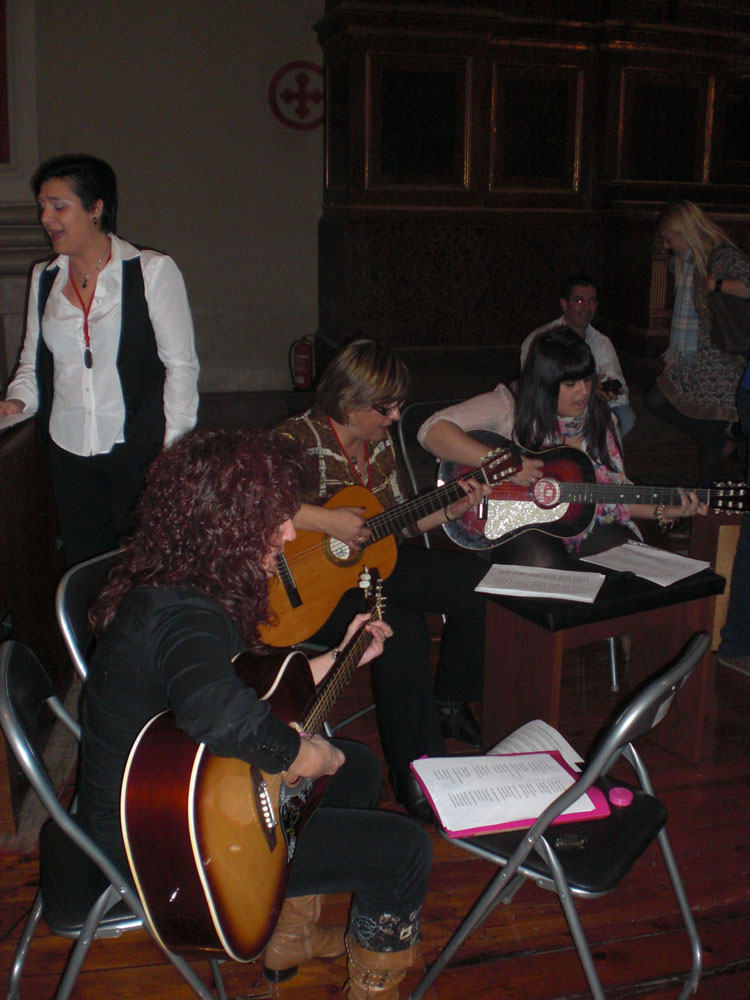 Sobre las 19,00 h partíamos hacia Nuestra Sede en la Parroquia de Santiago, donde empezaban los ensayos con algunos de nuestros pequeños Cofrades para el cántico posterior de villancicos