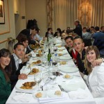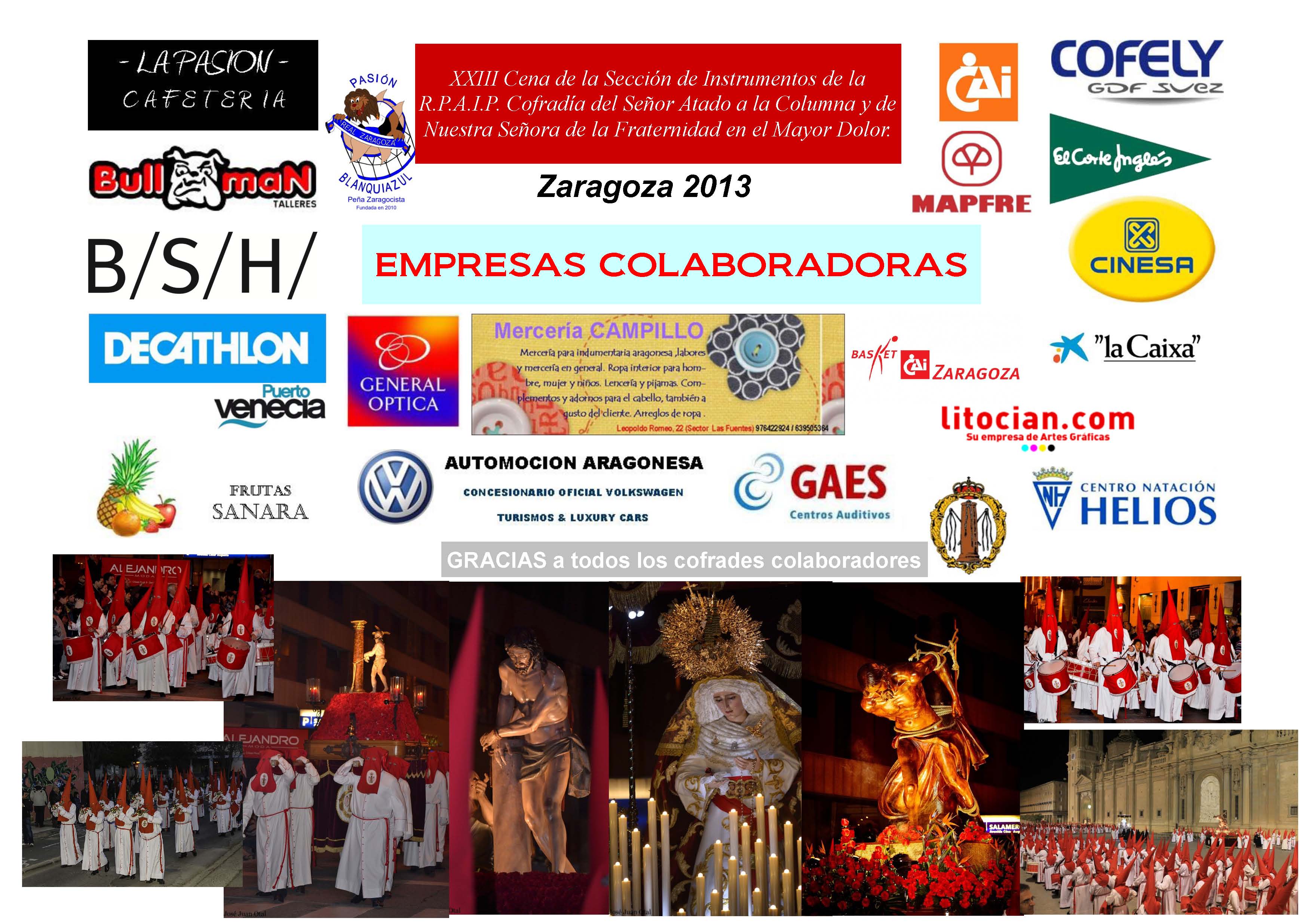 La celebración continuó con la proyección de un montaje doméstico que resumía el año 2012 además de dar unas pinceladas especialmente impactantes de nuestra querida Cofradía, video que ya se había proyectado en el capítulo general de marzo, pero que fué completado con algunas imágenes del 2013 y un brevísimo resumen de la retrasmisión que Antena Aragón hacía la noche del pasado Jueves Santo. Los ojos borrosos de algunos, los aplasusos en varios momentos y el letrero de fin, nos unían más todavía a los asistentes con los gritos de «Oé, la Columna Oeoeoe….».