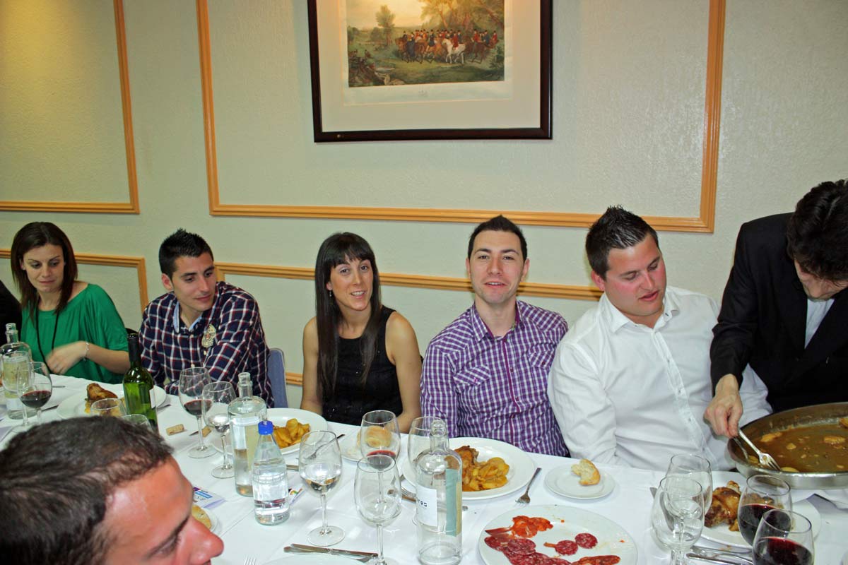 Como desde hace ya algunos años, nuestro chef cofrade partícular Javí, nos deleitó con unas magníficas viandas de centros de mesa a base de ibéricos, puntas de esparragos con salmón, ensalada de rulo de cabra, revuelto de setas y gambas, pimientos rellenos y langostinos a la plancha, para continuar con una carne asada son sus patatas panadera. Un mil hojas de nata y crema, el café y los licores, completaron el menú. Gracias Javí.