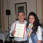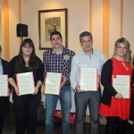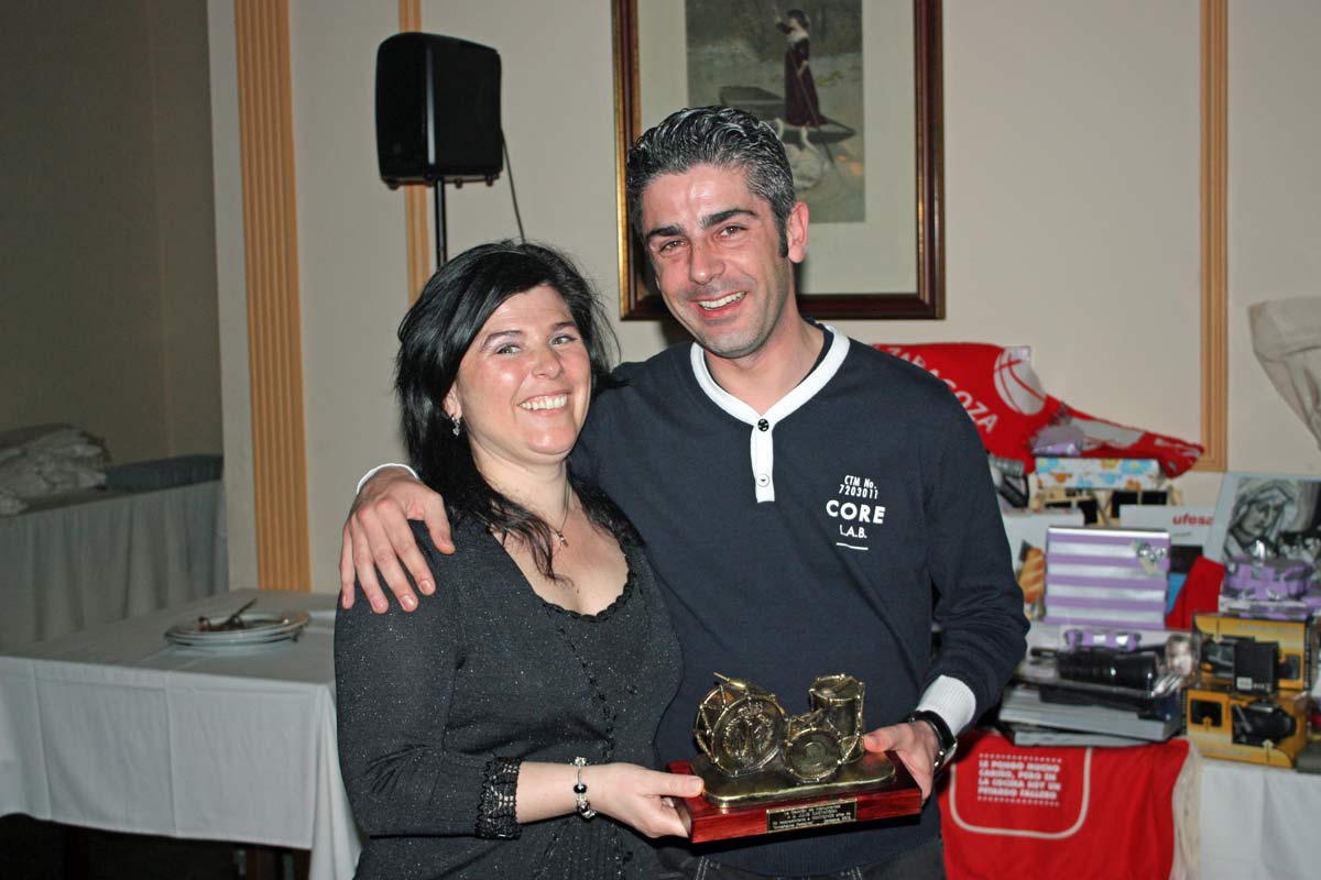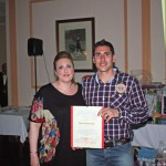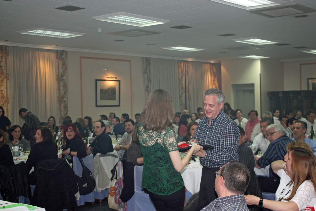 Después se iniciaba la entrega de recuerdos conmemorativos a aquellos miembros de la Sección que este año cumplían los 15, 25 y 40 años respectivamente de pertenencia a la misma, con la introducción y palabras de cariño y reconocimiento del delegado de la sección Chavi Luesma para todos ellos,