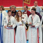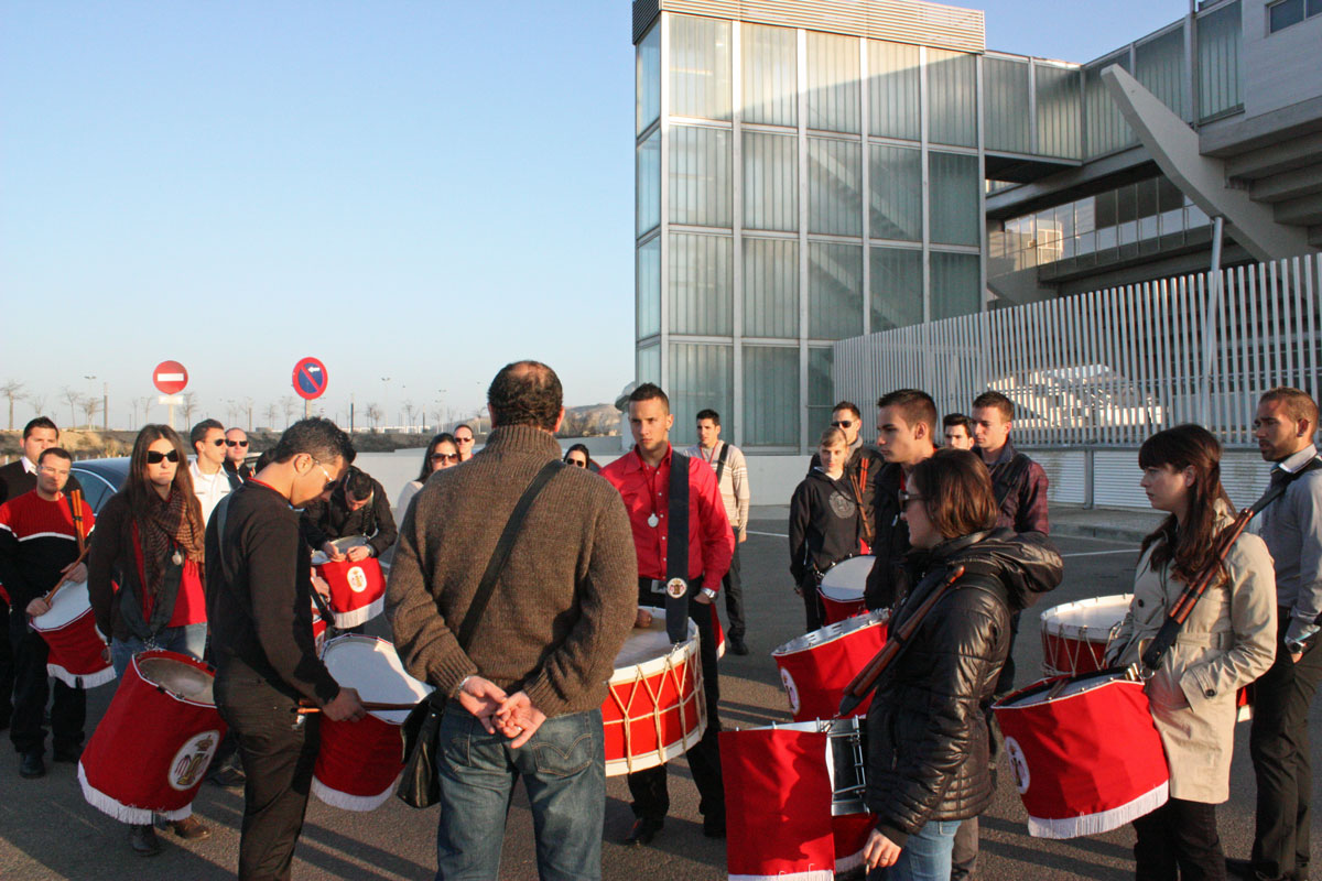 Nuestra Sección de Instrumentos ha estado representada por 24 destacados miembros de las secciones de tambores, timbales y bombos de la Cofradía. Desde aquí, lo primero de todo, agradeceros el esfuerzo de horas y horas de ensayos, que tanto tiempo de sueño os han quitado desde el pasado mes de noviembre. Lo segundo, y como no podía ser de otra manera, el agradecimiento de la Cofradía y de su Sección de Instrumentos, por la magnifica marcha presentada a concurso, perfectamente ejecutada y de enorme dificultad. Y lo tercero, nuestra más sincera enhorabuena por ese nuevo TERCER PUESTO CONSEGUIDO, que mantiene a nuestra Cofradía desde hace muchos años en «la parte alta de la tabla». Finalmente, agradecer a todas las Cofradías y Hermandades participantes en este acto, que año a año, reune a muchos cofrades, amigos, familiares y simpatizantes de los instrumentos tradicionales de la Semana Santa de Zaragoza. Por último felicitamos desde estas líneas a la Hermandad de San Joaquín y de la Virgen de los Dolores de Zaragoza, por el primer puesto alacanzado con la ejecución de su toque en el Concurso de este año.