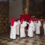 El acto del Traslado del Cristo Flagelado, el Domingo de Resurección, estuvo marcado por una elevada participación que se mantiene y supera, después de más de una decada de largo recorrido desde el Convento, donde las Hermanas le rinden culto, hasta nuestra Sede de la Iglesia de Santiago el Mayor. Casí 4 de horas de procesión, iniciada con el rezo de vísperas, y finalizada con un momento de recogimiento y oración en Santiago, completaron este día.