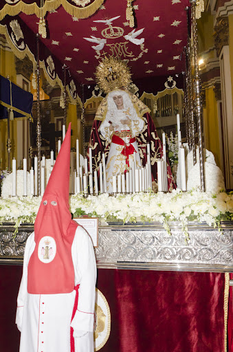 El Sábado Santo. y después de recoger y poner en orden todo el Patrimonio de la Cofradía, ayudados por muchos cofrades (gracias desde estas líneas a todos), nos dirigimos a las 13h a un momento de recogimiento y oración junto al Cristo de la Cama, en la Iglesia de San Cayetano, también con una buena participación de cofrades.