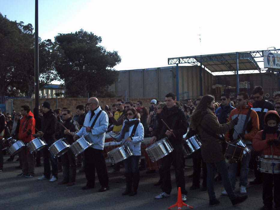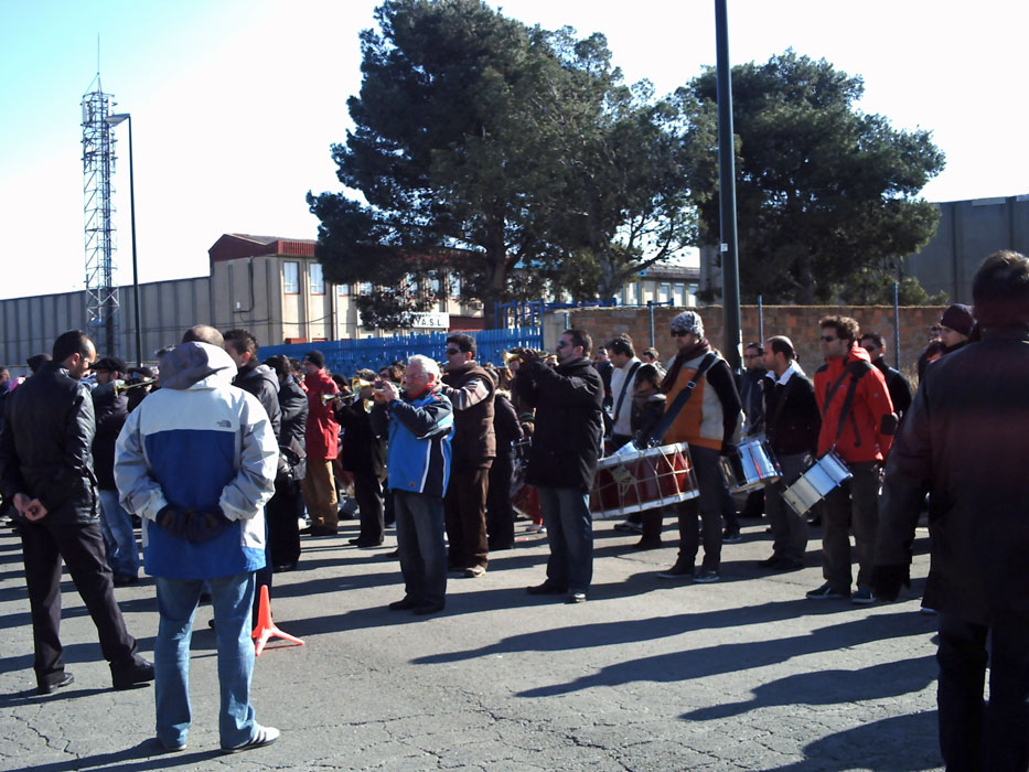 Sin más dilación y en cuanto habíamos llegado todos los miembros de la Sección que estábamos citados, nos colgamos los instrumentos, se explicó el acto del Lunes Santo, y procedimos a realizar un ensayo conjunto que, como no podía ser de otra manera, resultó un éxito. Los cetros generales de ambas cofradías estaban presentes también para intercambiar impresiones al respecto de espacios, tiempos, etc., al igual que nos acompañaba un buen número de curiosos de ambas cofradías que daban, al mismo tiempo, un ambiente más festivo a la jornada.