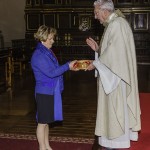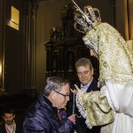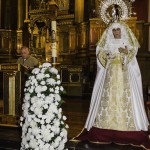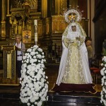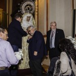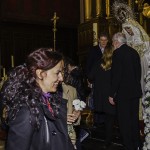 Tras la Eucaristía cantamos la Salve y se realizó el también tradicional besamanos de la imagen, tras la que los asistentes recibían una flor de las que había acompañado a la Virgen en la celebración.
