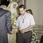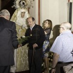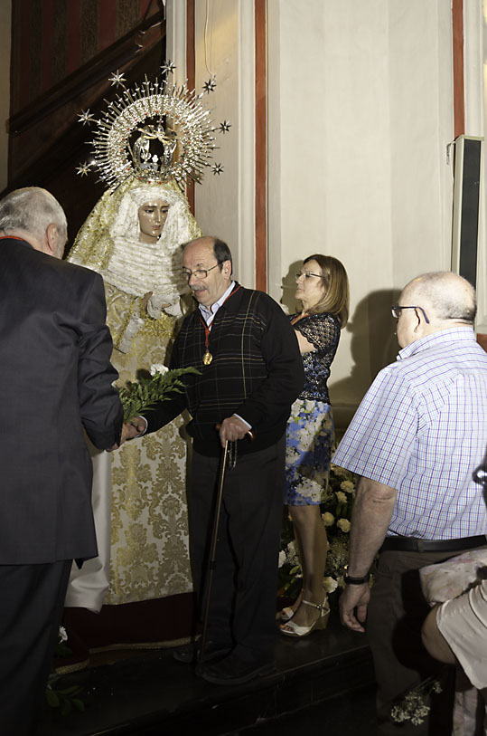 Tras la Eucaristía se realizó el también tradicional besamanos de la imagen, tras la que los asistentes recibían una flor de las que había acompañado a la Virgen en la celebración.