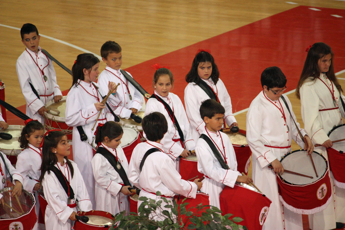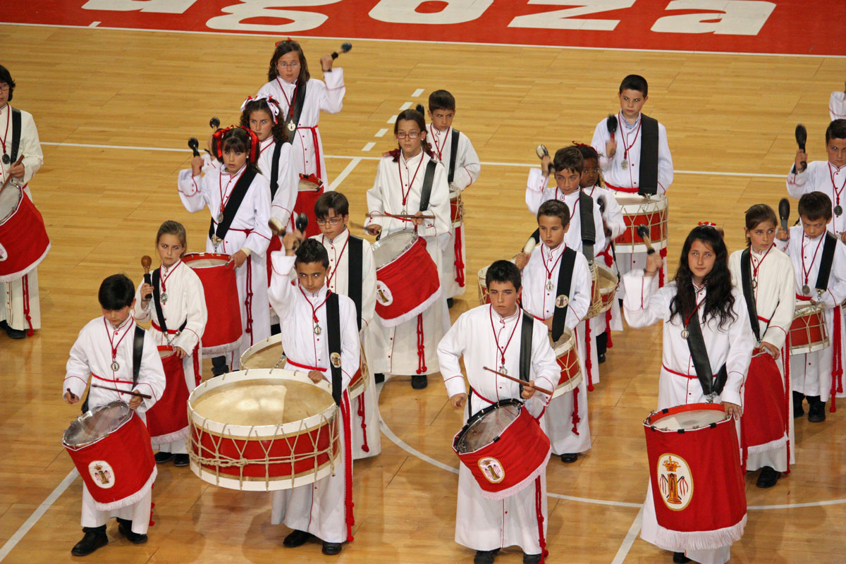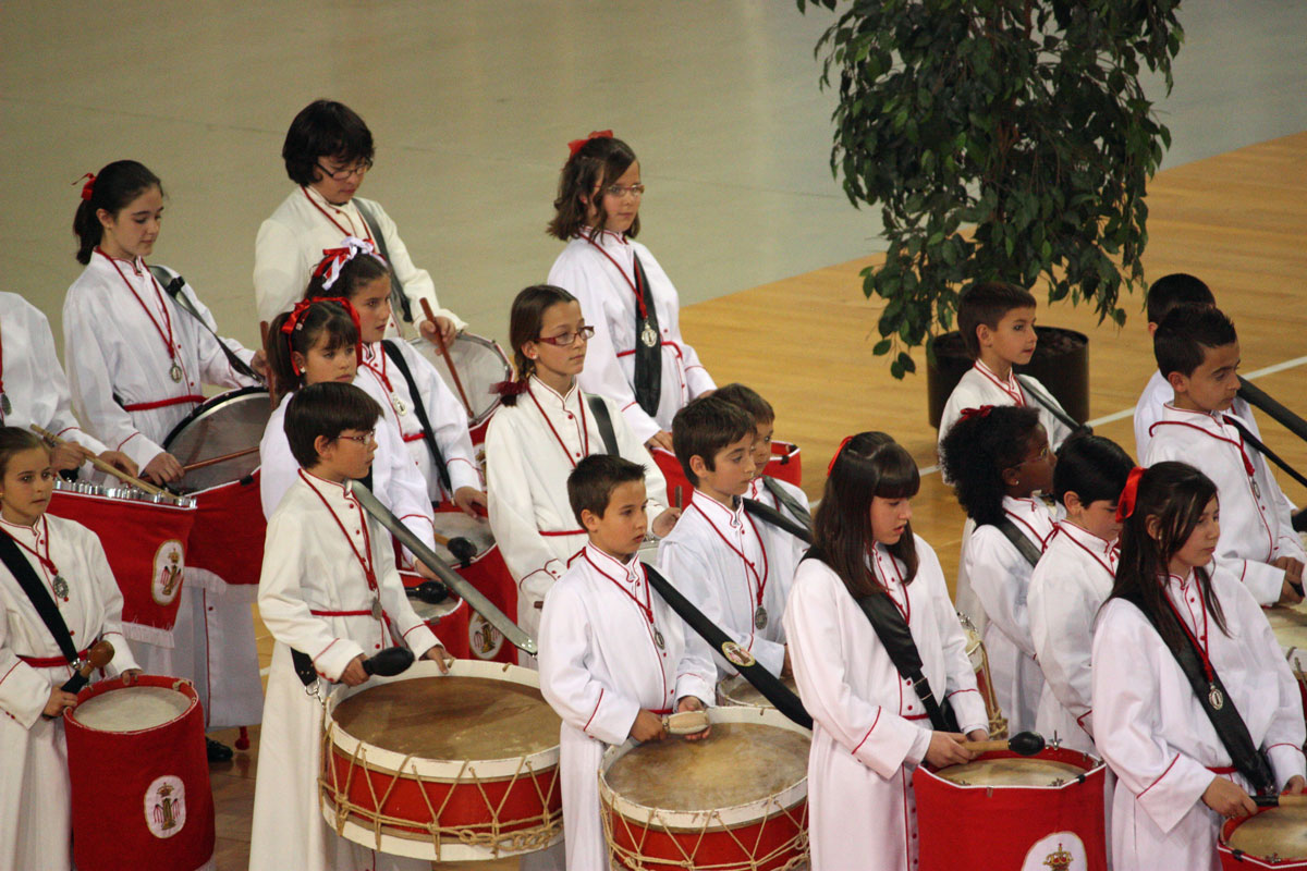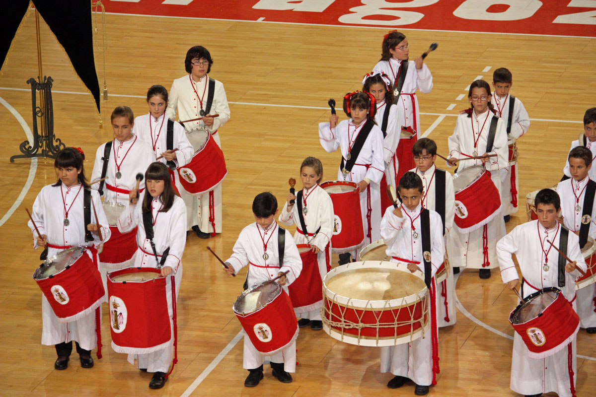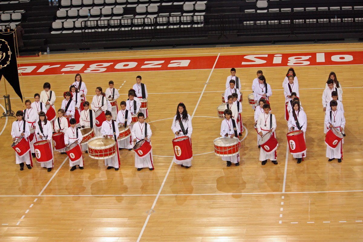 Como en años anteriores, y con un abarrotado Pabellón Siglo XXI, los cichos y chicas de nuestra Sección de Instrumentos nos han dejado con la boca abierta a todos a los que allí hemos asistido. Una tras otra, después de la intervención del Piquete de Honor de la Semana Santa, han participado 19 Cofradías y Hermandades de Zaragoza, todas ellas con más o menos chavales, pero con un denominador común, la ilusión de representar a sus Cofradías frente a un público entregado con los peques.