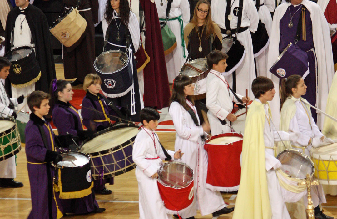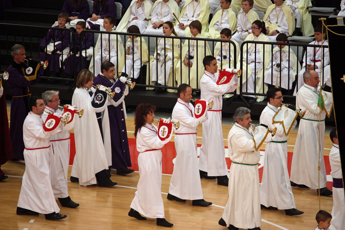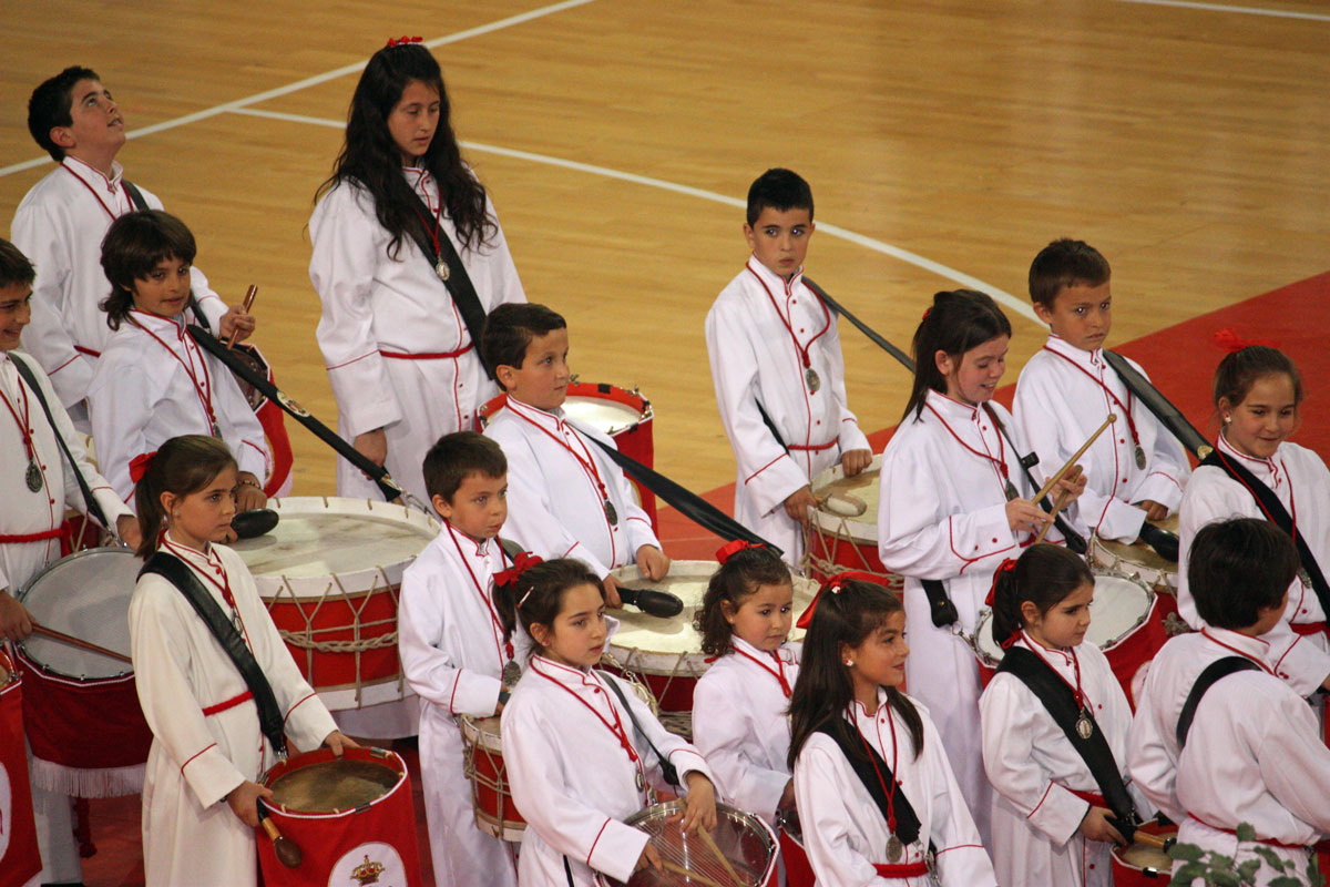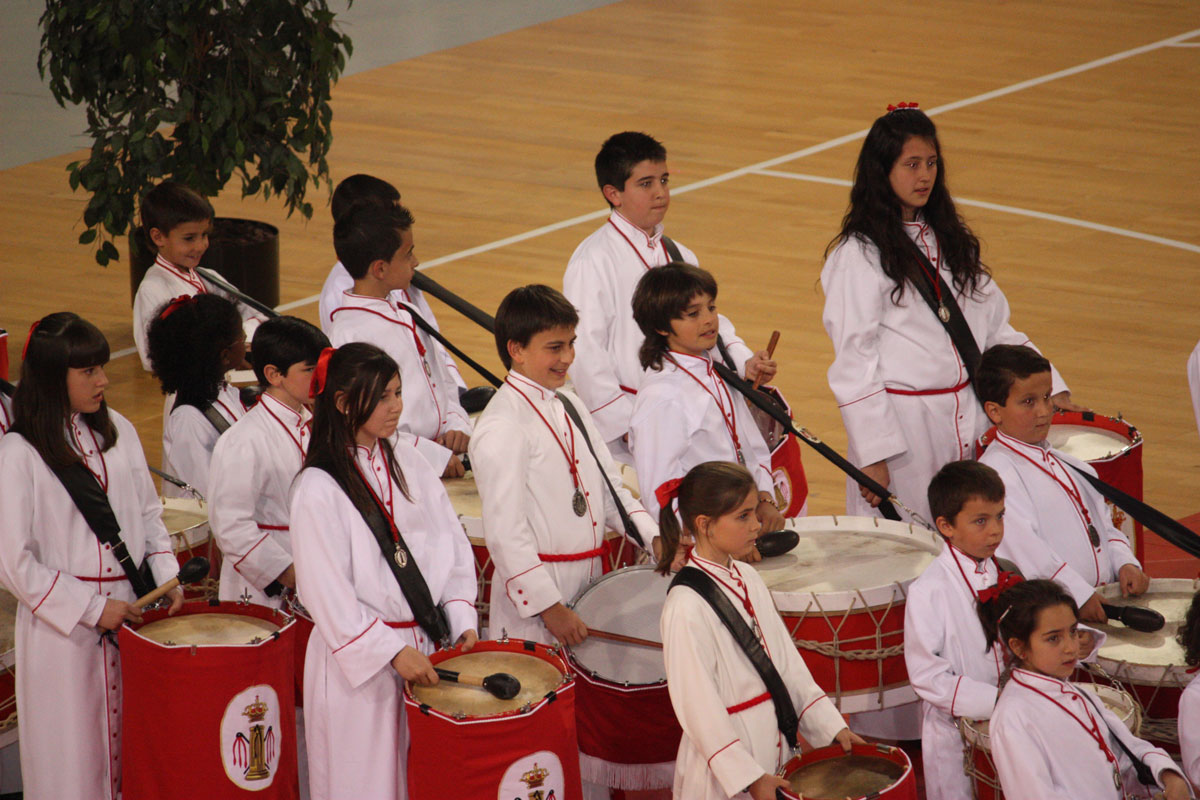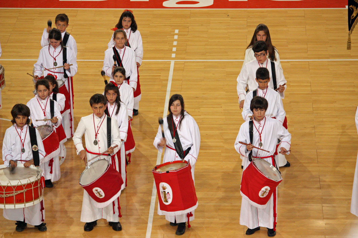 Como en años anteriores, y con un abarrotado Pabellón Siglo XXI, los cichos y chicas de nuestra Sección de Instrumentos nos han dejado con la boca abierta a todos a los que allí hemos asistido. Una tras otra, después de la intervención del Piquete de Honor de la Semana Santa, han participado 19 Cofradías y Hermandades de Zaragoza, todas ellas con más o menos chavales, pero con un denominador común, la ilusión de representar a sus Cofradías frente a un público entregado con los peques.