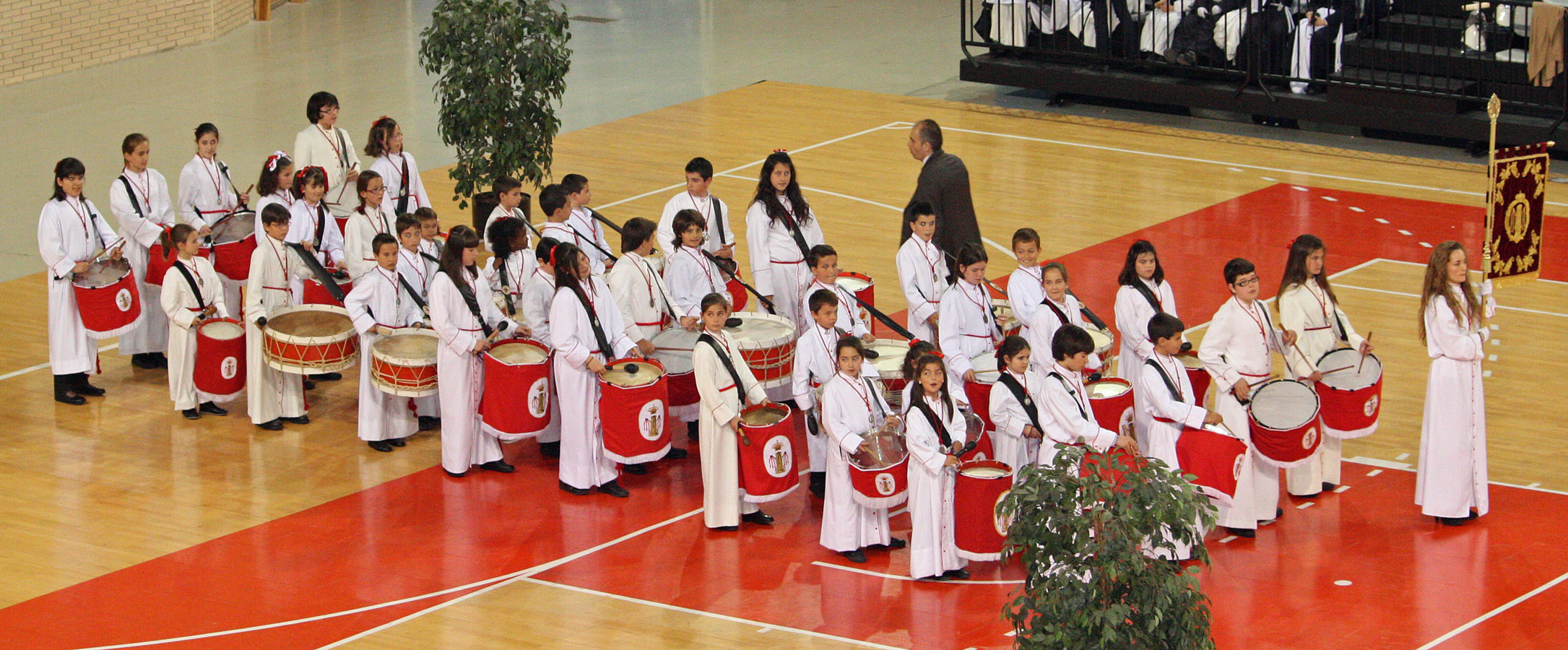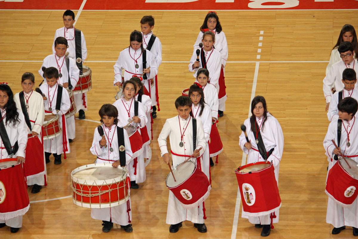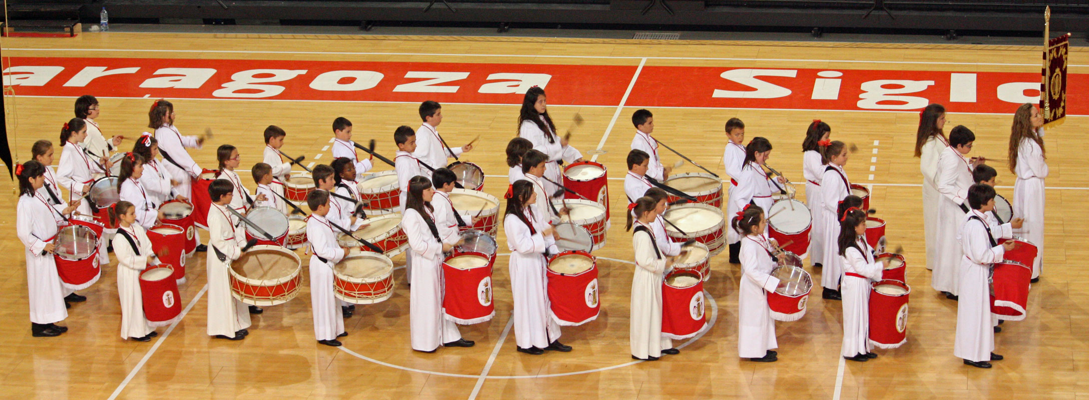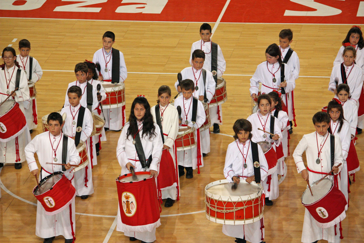 Como en años anteriores, y con un abarrotado Pabellón Siglo XXI, los cichos y chicas de nuestra Sección de Instrumentos nos han dejado con la boca abierta a todos a los que allí hemos asistido. Una tras otra, después de la intervención del Piquete de Honor de la Semana Santa, han participado 19 Cofradías y Hermandades de Zaragoza, todas ellas con más o menos chavales, pero con un denominador común, la ilusión de representar a sus Cofradías frente a un público entregado con los peques.