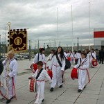 Nuestros chicos y chicas, con una número elevadado de participación, salían entre los aplausos de nustros cofrades y anigos dándonos una lección de seriedad y espectacularidad en el toque.