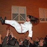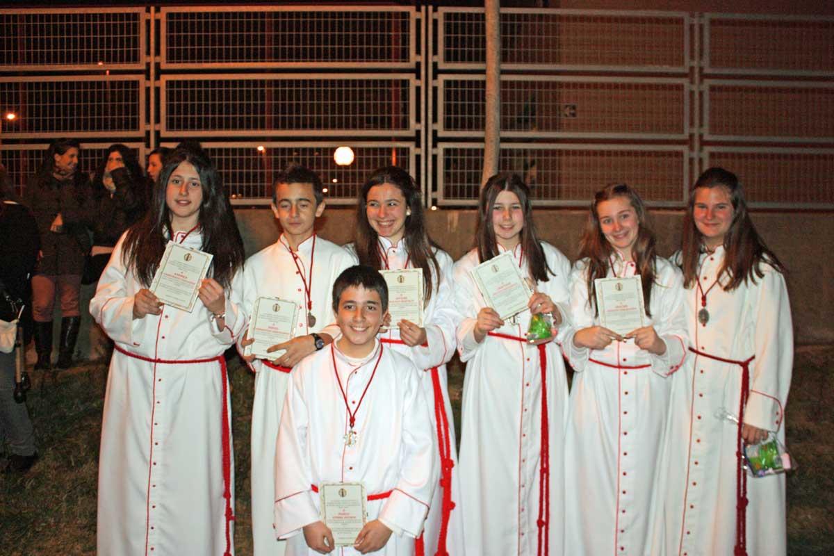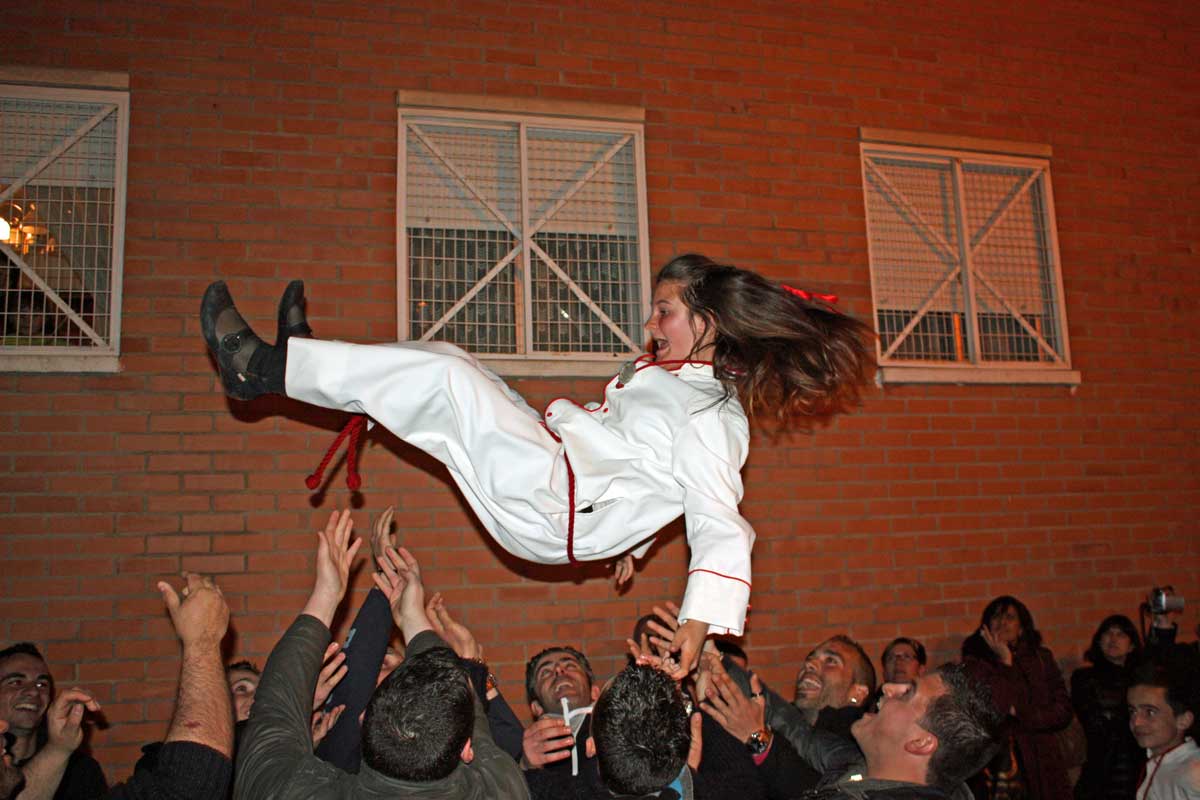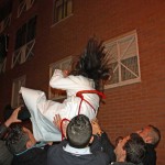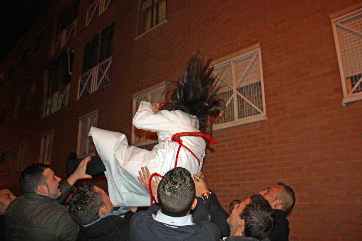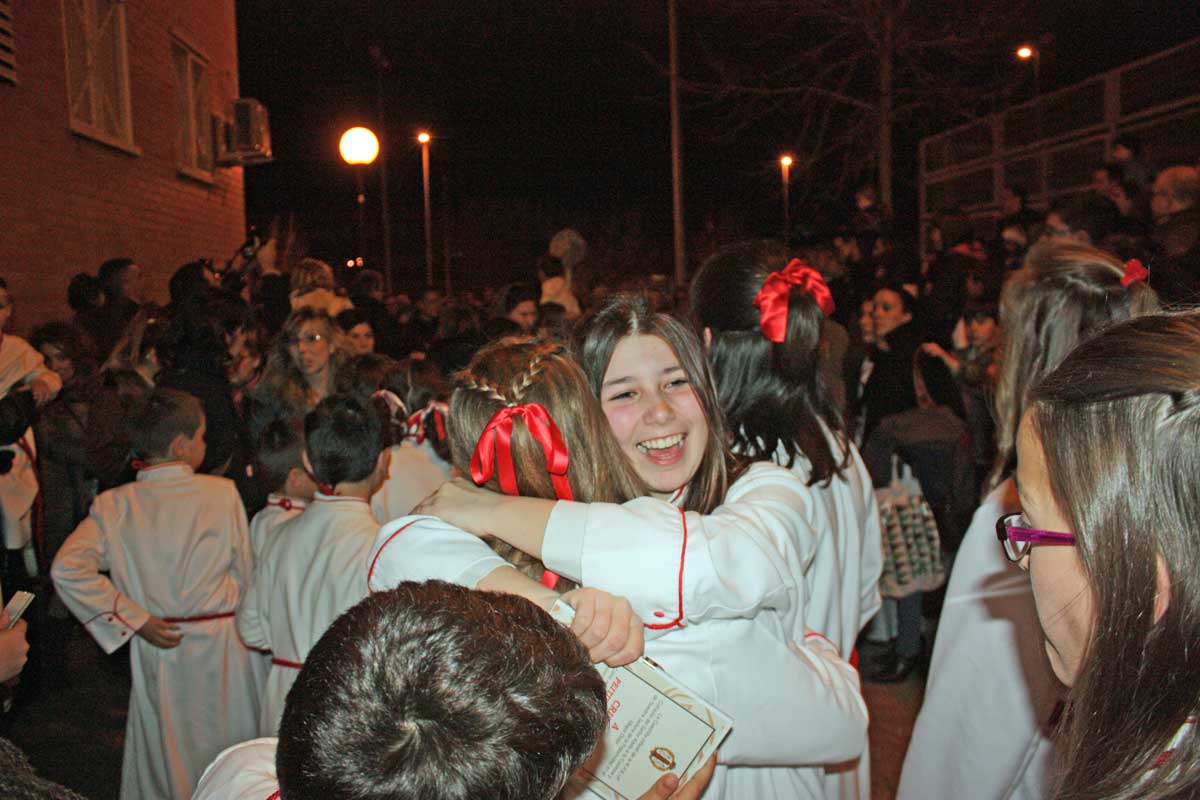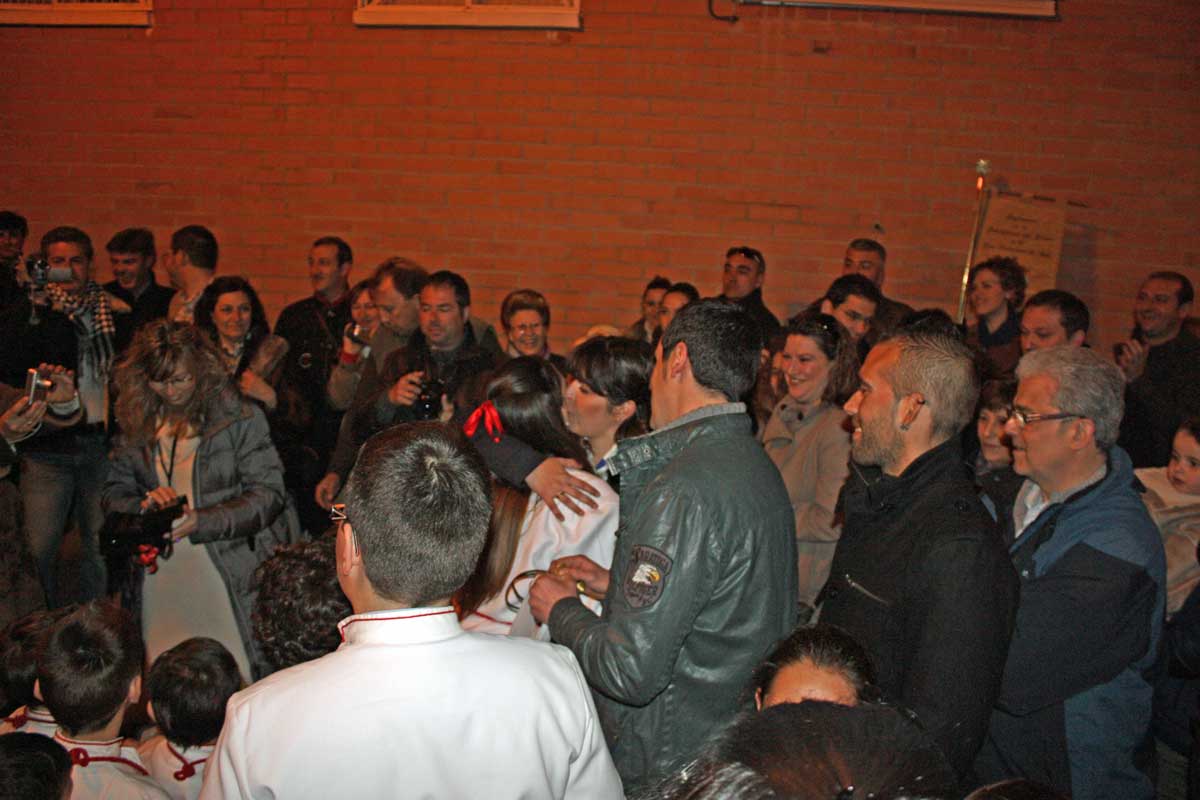 Posteriormente y como también viene siendo habitual la Cuadrilla obsequiaba a sus «profes» con un pequeño detalle y la Cofradía a su vez les correspondía con también las habituales «chuches» . Después la despedida de los chavales que por edad abandonan su paso por la cuadrilla y el «manteo» de los mismos por parte de los chicos de la cuadrilla de mayores.
