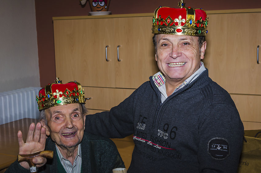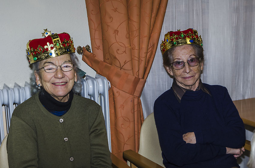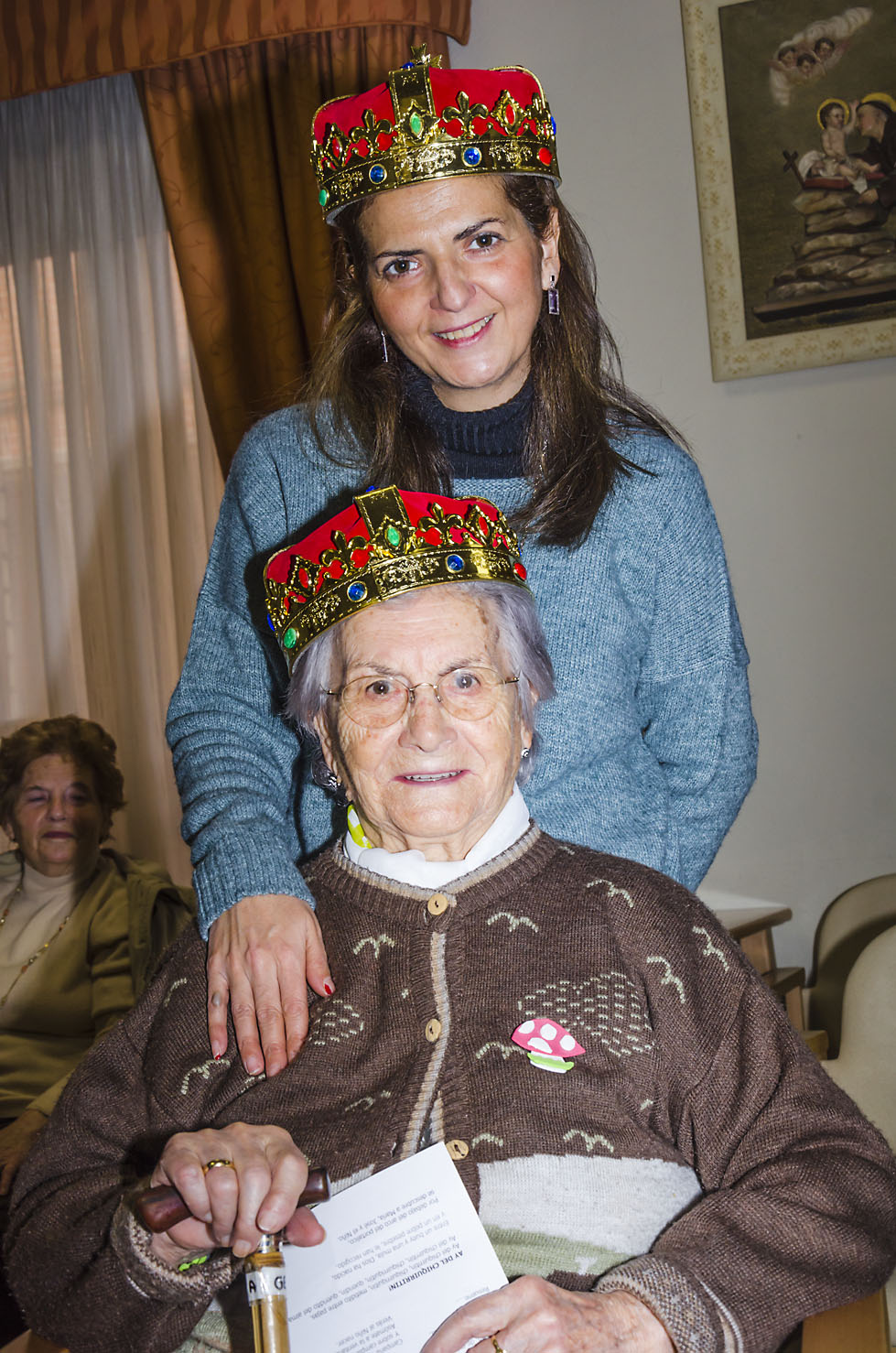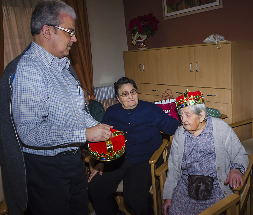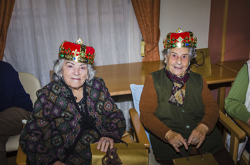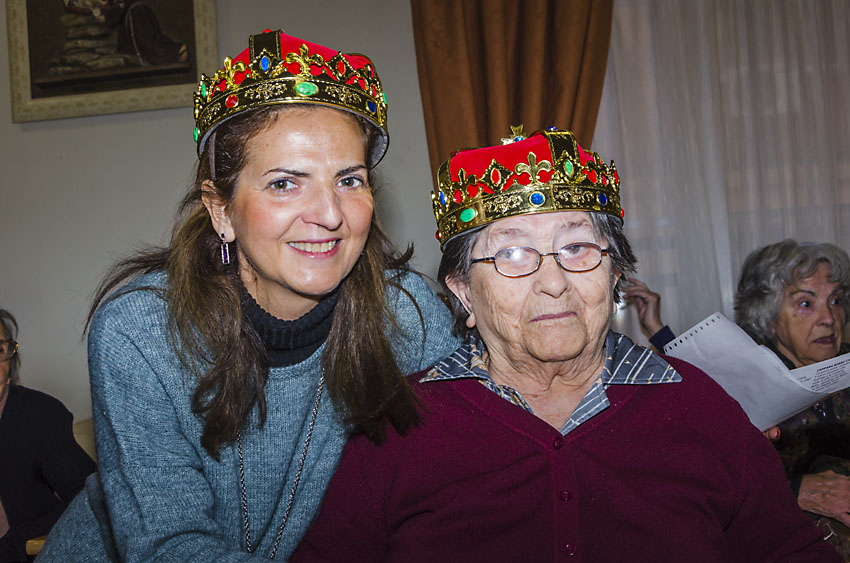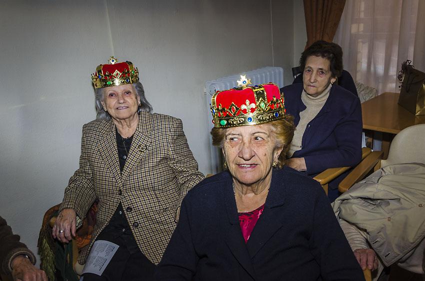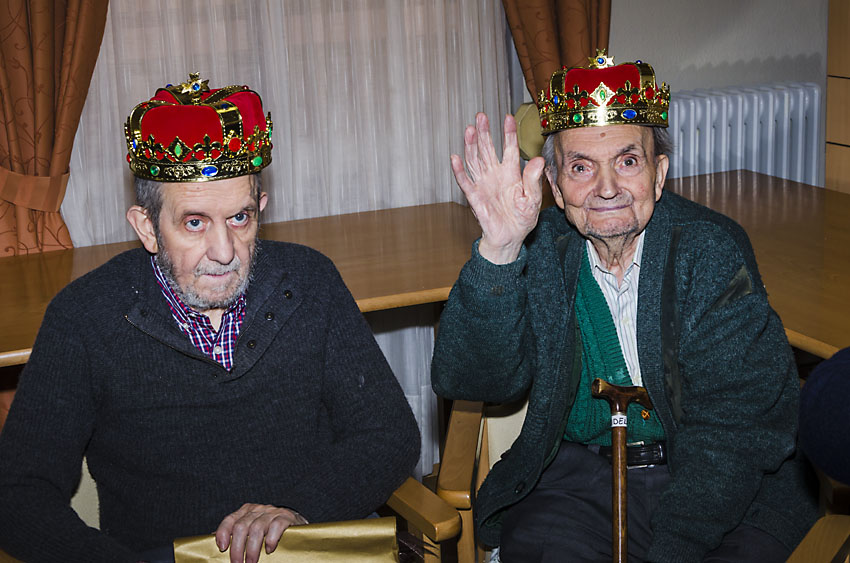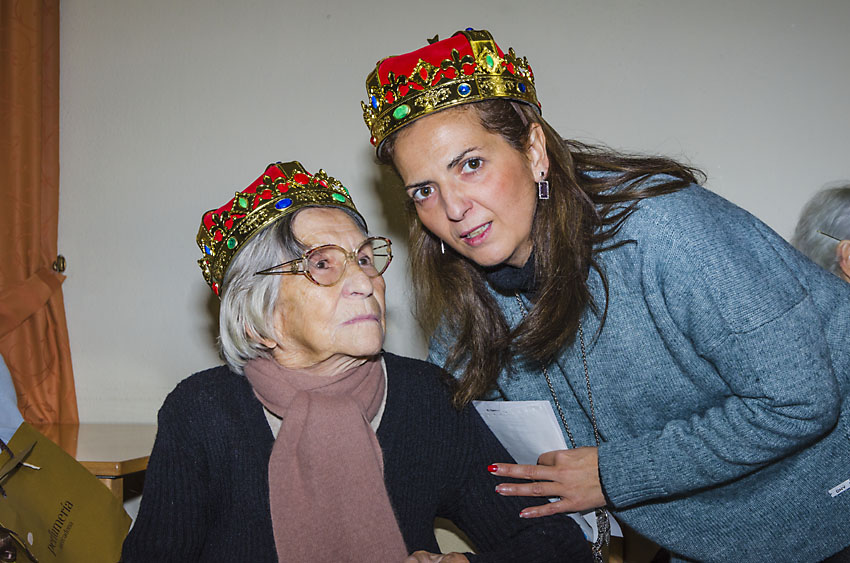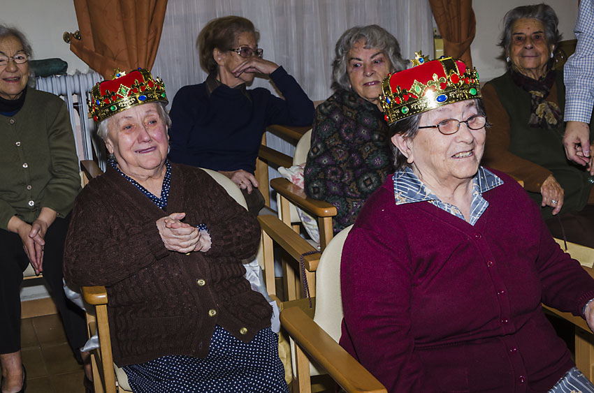 Por último, quisimos que nuestros «abuelos» fueran «Reyes Magos» por un día, y con alegría les colocábamos sobre sus cabezas las coronas reales, posándo en las alegres instantáneas que veis en el presente reportaje.