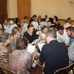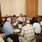 Pasadas las 17,00 horas el sacerdote Jesús Segura, nos debaja, con sus palabras, un poso dificil de olvidar en una amena charla de casí dos horas de duración que, a todos los que allí estuvimos, nos resultó enormemente gratificante. Hubo también una puesta en común por grupos que resultó bastante dinámica. Gracias querido Jesús, tus palabras nos llenaron y acercaron más a nuestra misión como cristianos. Al finalizar la charla, nuestro Hermano Mayor hizó entrega a Jesús Segura de una reproducción de la imagen de nuestro Paso Titular, como agradecimiento por su desinterasada colaboración en este día.