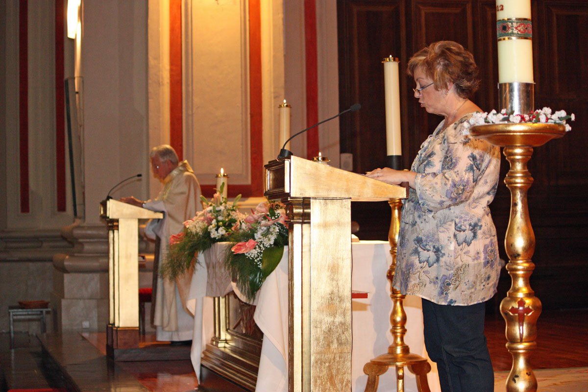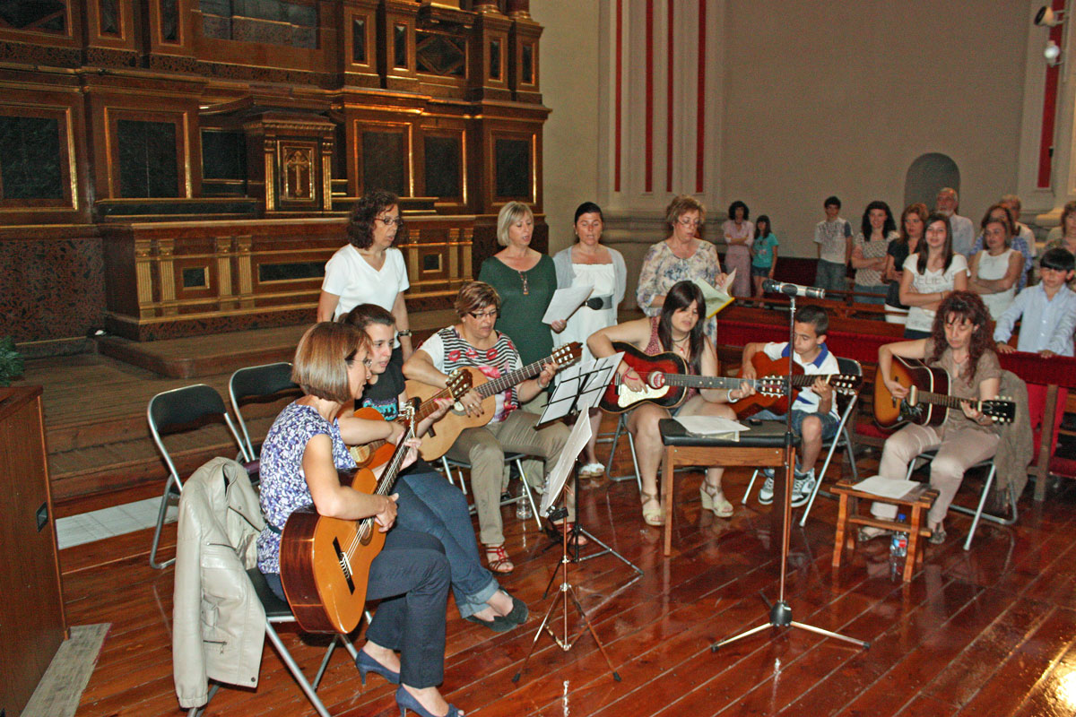 A las 19,30 h se iniciaba la Eucaristía de acción de gracias con motivo del fin de curso, celebrada por nuestro Consiliario José Antonio Usán, y en la que hubo una participación más que importante de la Cofradía. Nuestro coro nos amenizó de nuevo con sus canciones y melodías, y esta vez con una sorpresa musical en la celebración de la Paz.