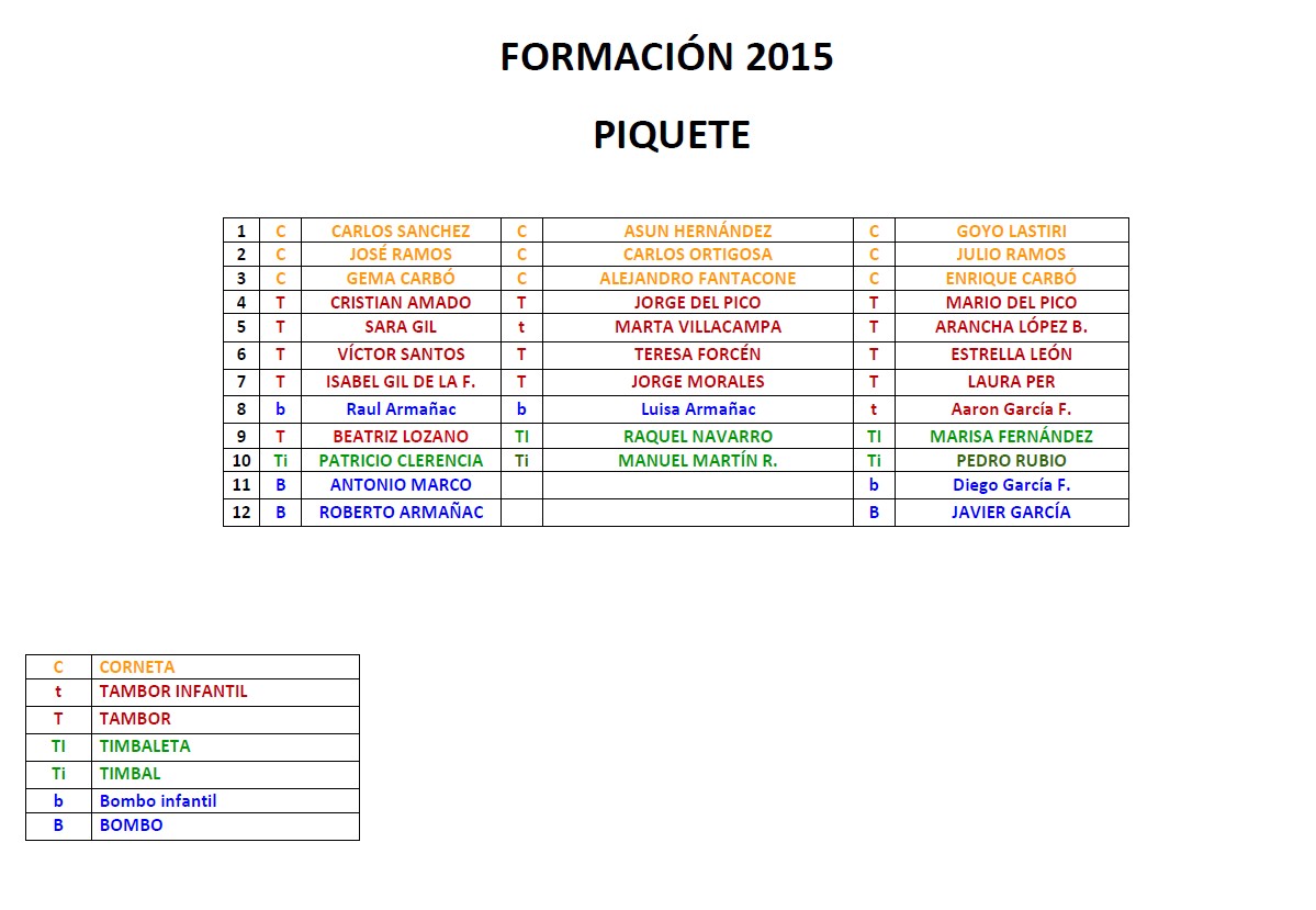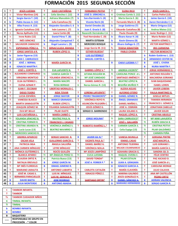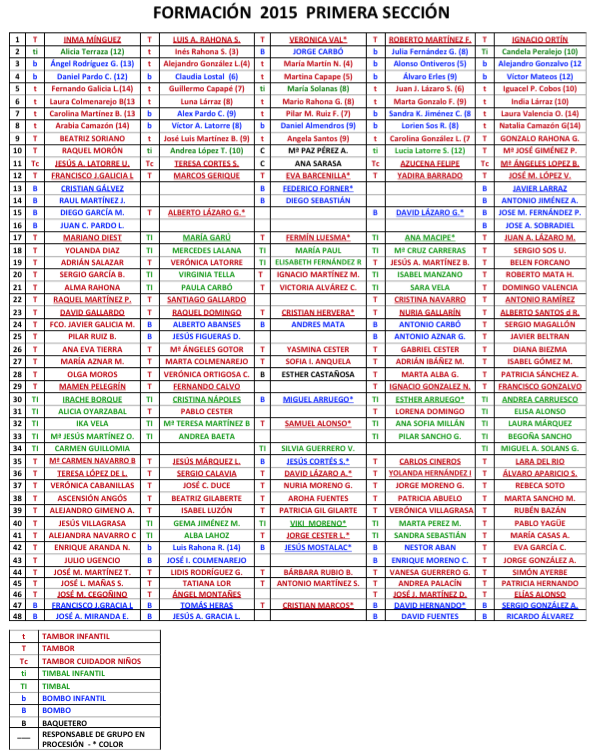 A continuación os dejamos las formaciones de la sección de instrumentos para las procesiones 2015.