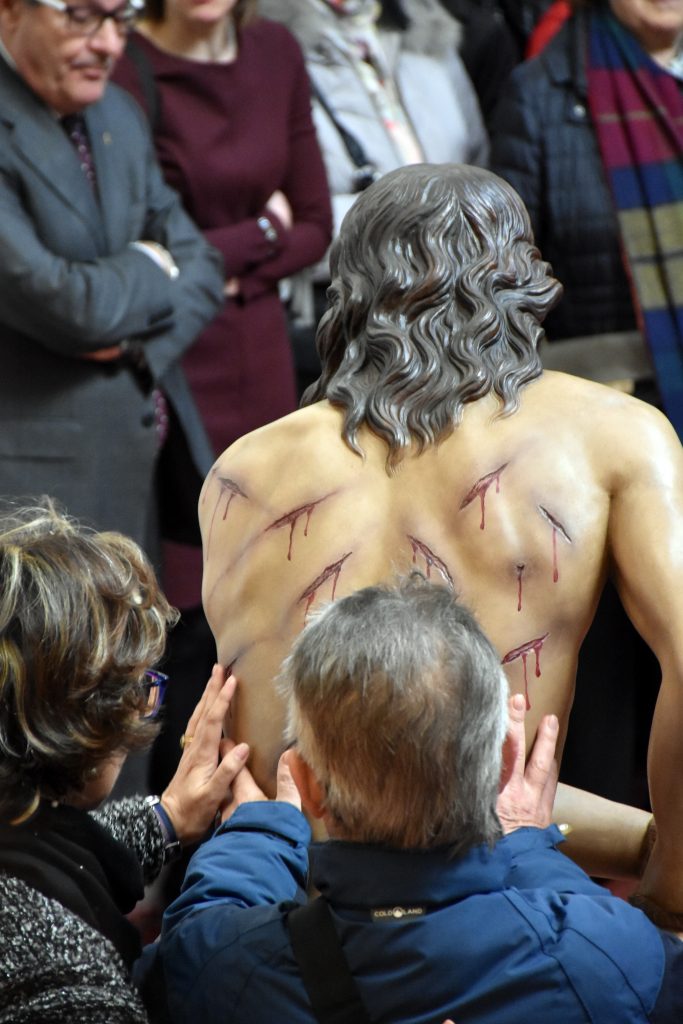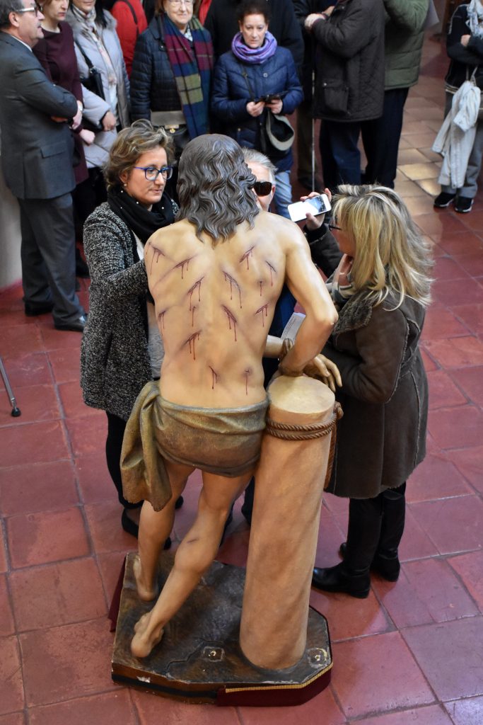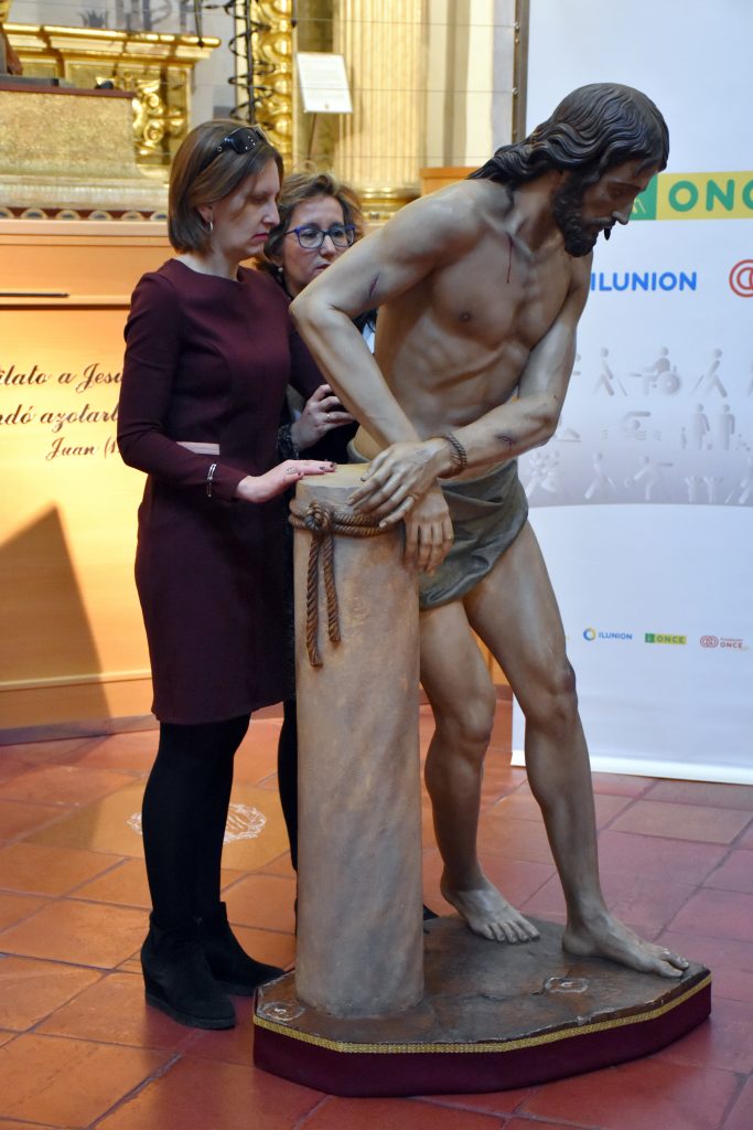El viernes 12 de abril a las 10:30 horas, afiliados de la fundación ONCE vendrán a la iglesia de Santiago a tocar las imágenes por segundo año consecutivo. Esta iniciativa de la Asociación para el Estudio de la Semana Santa en colaboración con la fundación ONCE comenzó el año 2017 visitando la iglesia de San Cayetano, el año pasado la Cofradía se sumó a esta actividad permitiendo que un grupo de unos 20 invidentes pudieran tocar la imagen del Señor flagelado.