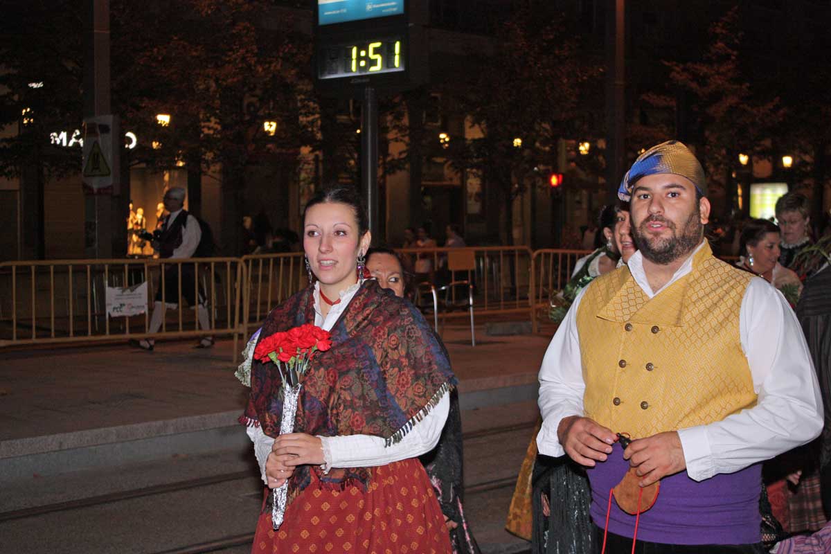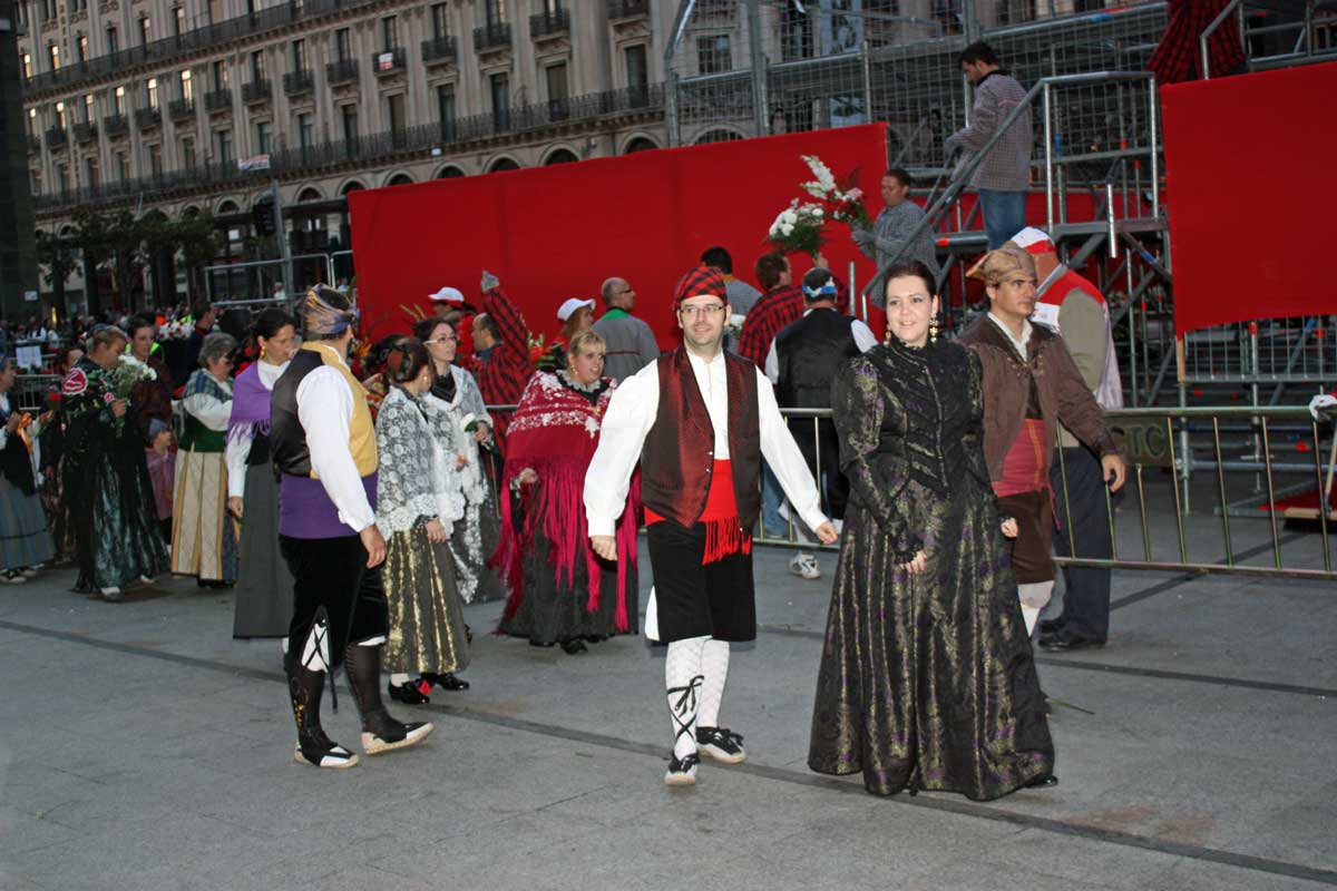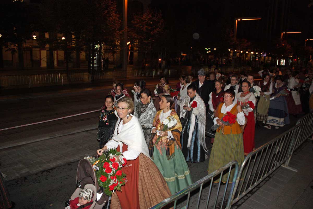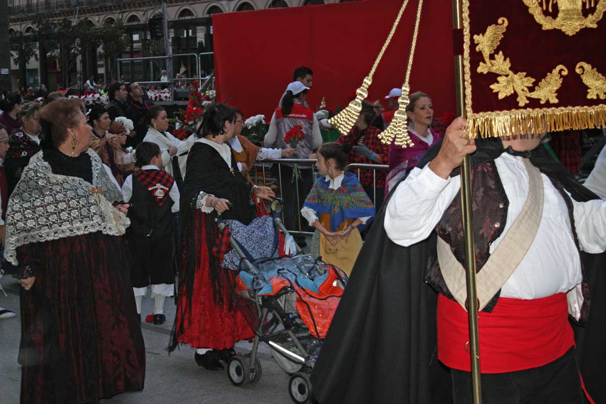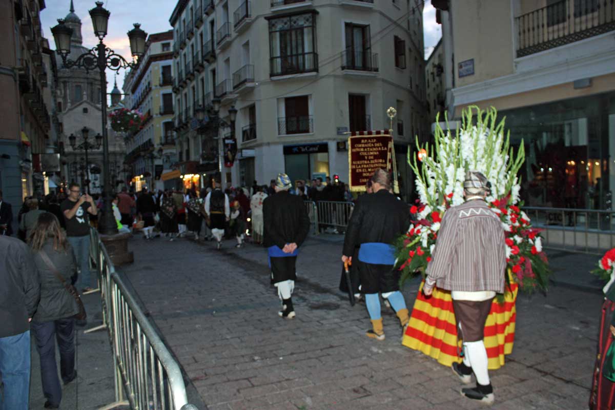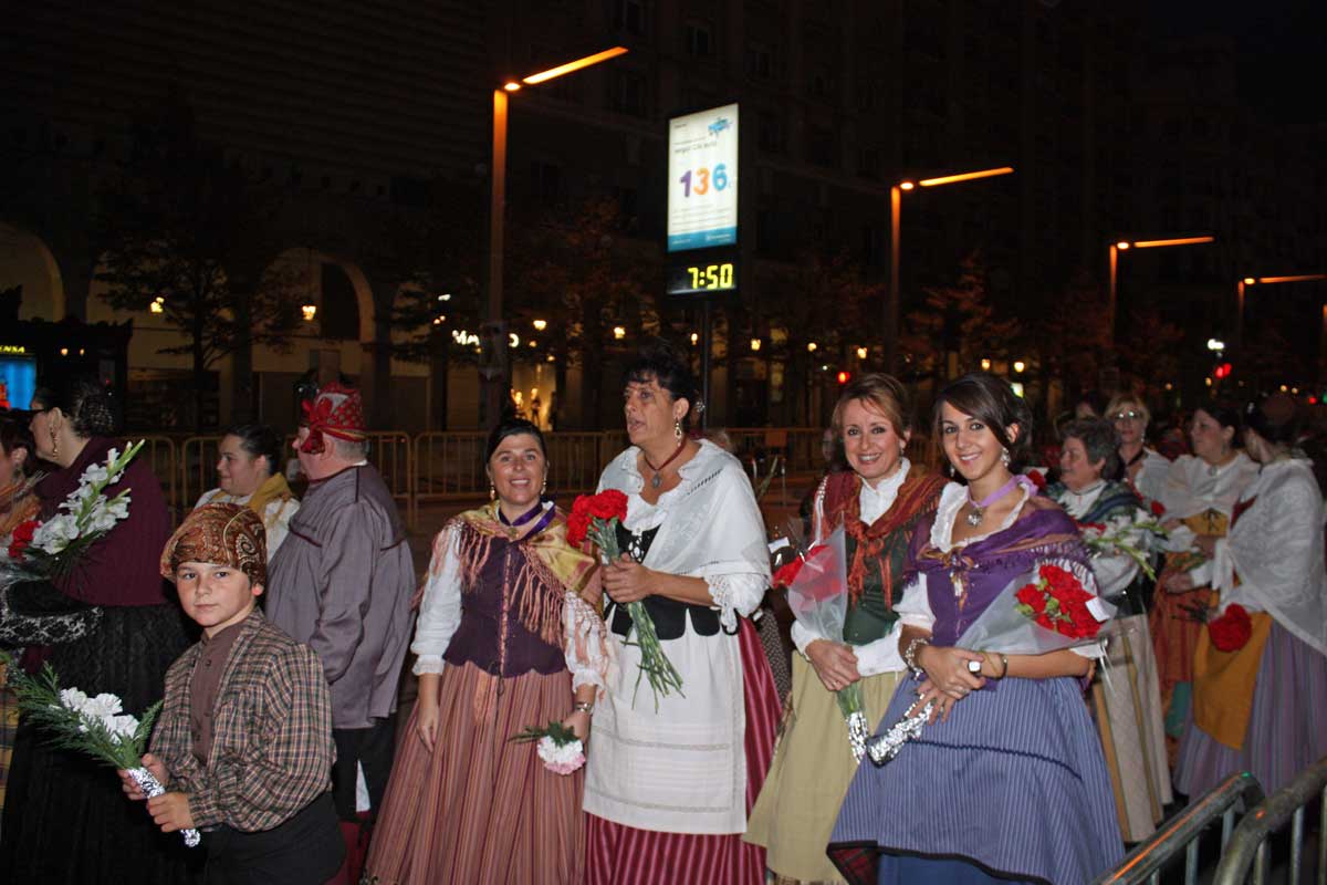 Hoy, 12 de octubre de 2012, fiesta nacional, y puntualmente en el horario previsto a las 07,40 h, un grupo de casi 150 cofrades y simpatizantes de nuestra Cofradía, han participado en la tradicional ofrenda de flores a nuestra Patrona, y de toda la hispanidad, la Virgen del Pilar, a la que tanta devoción los zaragozanos, aragoneses y españoles profesamos. Da igual que sea temprano, da lo mismo que haga frío, aire, llueva o haga calor, año tras año, los cofrades acudimos orgullosos a esa cita que marca un antes y un después en nuestros calendarios y agendas.