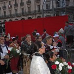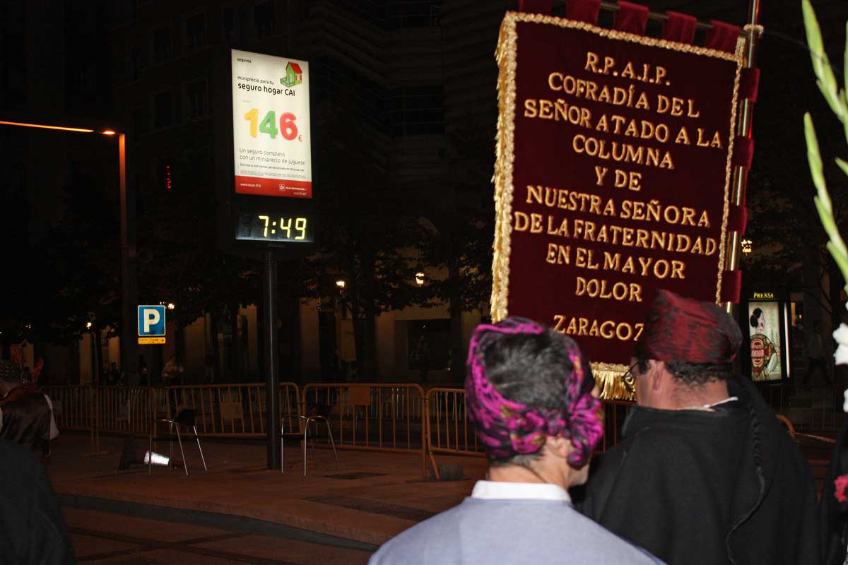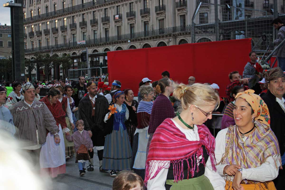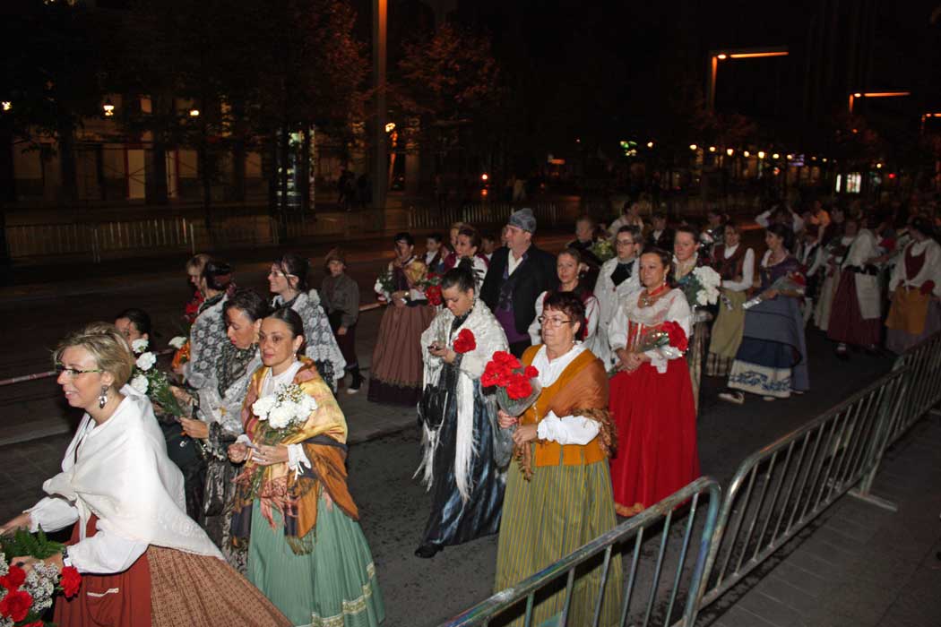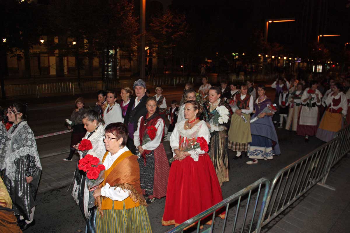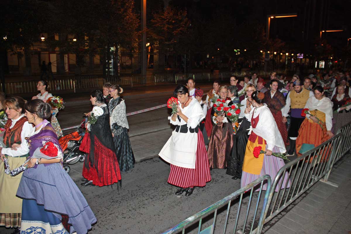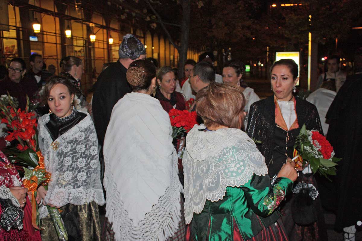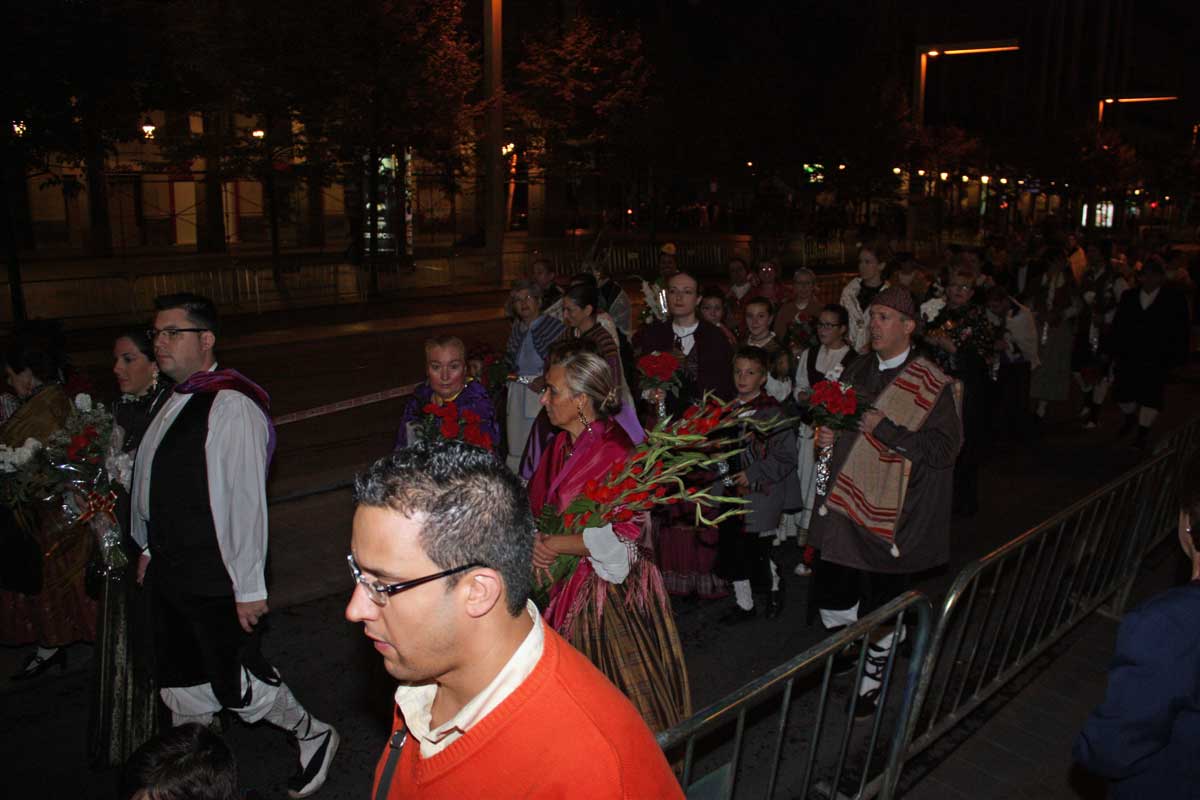Hoy, 12 de octubre de 2012, fiesta nacional, y puntualmente en el horario previsto a las 07,40 h, un grupo de casi 150 cofrades y simpatizantes de nuestra Cofradía, han participado en la tradicional ofrenda de flores a nuestra Patrona, y de toda la hispanidad, la Virgen del Pilar, a la que tanta devoción los zaragozanos, aragoneses y españoles profesamos. Da igual que sea temprano, da lo mismo que haga frío, aire, llueva o haga calor, año tras año, los cofrades acudimos orgullosos a esa cita que marca un antes y un después en nuestros calendarios y agendas.
