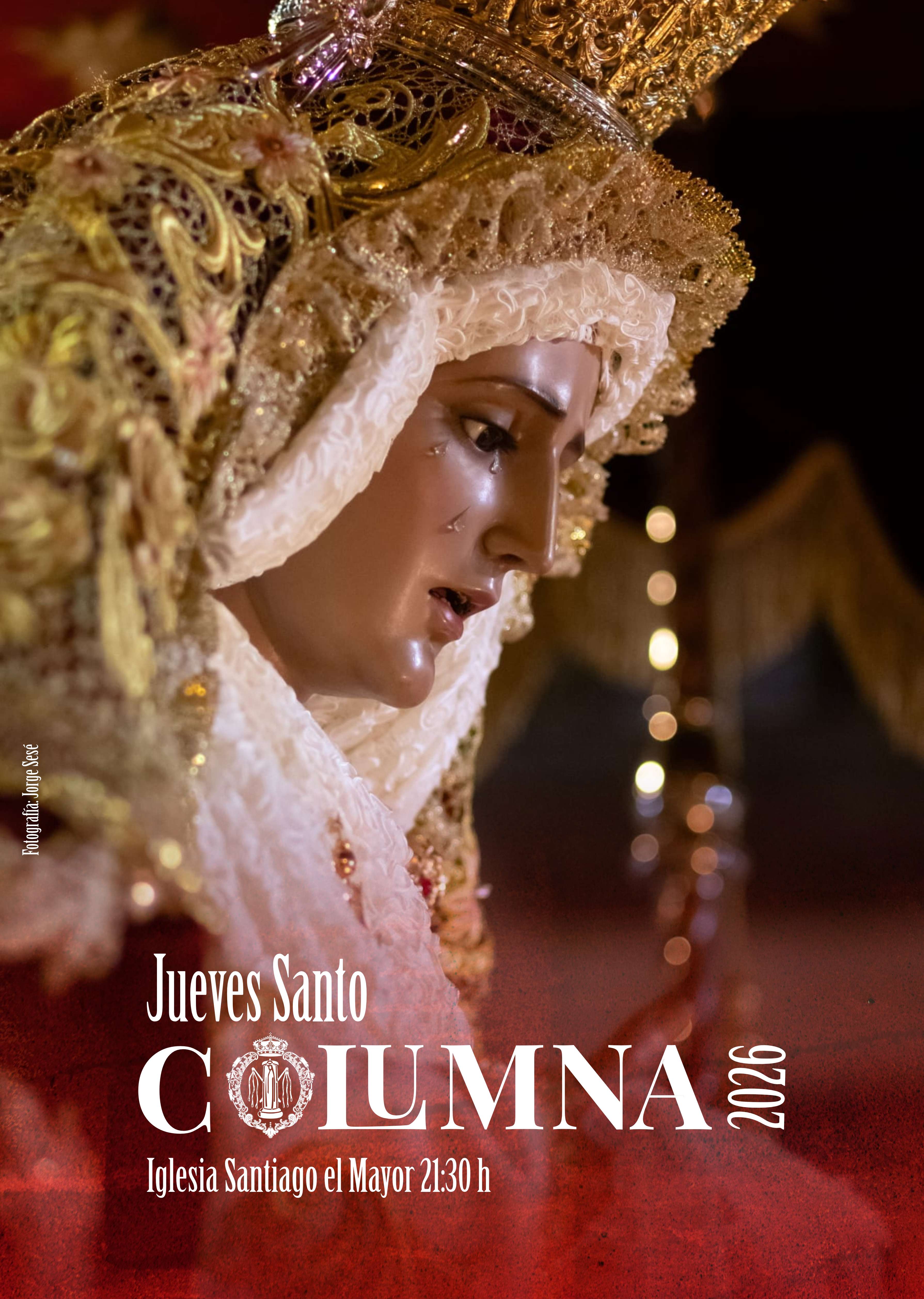 En esta edición, el protagonismo recae sobre la imagen de Nuestra Señora de la Fraternidad en el Mayor Dolor, capturada en una fotografía de Jorge Sesé durante nuestra procesión de 2025.