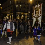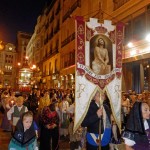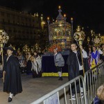 Casí 200 cofrades y amigos de nuestra Cofradía, procesionaron este año en un recorrido marcado por el buen tiempo, la gran afluencia de devotos, de turistas y curiosos. El respuoso silencio contrastaba con la megafonía, oraciones y cánticos que en todo momento nos acompañaron por las calles del centro de Zaragoza, sólamente roto en el paso por la Plaza España (ya viene siendo habitual en esta zona compartir el momento de recogimiento con las batucadas, raps, música sudamericana, etc…propias de la fiesta en la ciudad; en fín esto solo pasa en esta ciudad, que le vamos a hacer….).