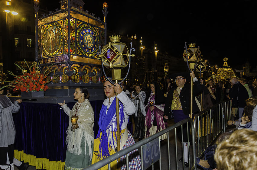 Igualmente y al coincidir el final de fiestas con el paso del Rosario por la Plaza del Pilar, en donde cientos de jóvenes esperaban la aparición de Pablo Alborán, la procesión aumentaba su velocidad a un ritmo alocado en donde se daba la circunstancia de incluso adelantar a personas de mayor edad que habían iniciado el recorrido por delante de nosotros. (También, esto solo pasa en esta ciudad….. ! Que lástima ¡ )