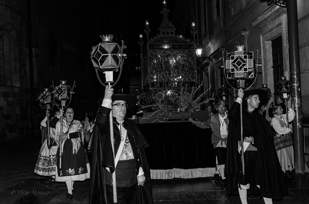 Un año más, el Rosario de Cristal, una de las mayores joyas culturales de nuestra ciudad, recorrió el pasado lunes día 13 de octubre de 2014 las calles del centro histórico zaragozano. Nuestra Cofradía, como ya lo viene haciendo desde hace más de un cuarto de siglo, participó portando y acompañando el segundo misterio doloroso, La Flagelación.