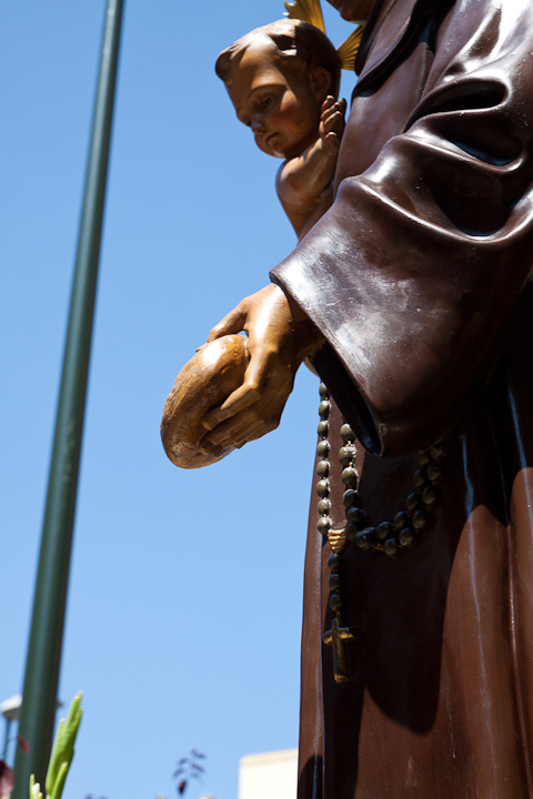 El acto se iniciaba con nuestra participación en la celebración eucarística que a las 11,00 h, en una iglesia a rebosar, celebraba el Párroco y Sacerdote Franciscano bajo la presencia de una imagen de San Francisco de Padua de enorme devoción popular en el Barrio Jesús, y con la habitual compañía de los niños y niñas del barrio que este año habían recibido su Primera Comunión.