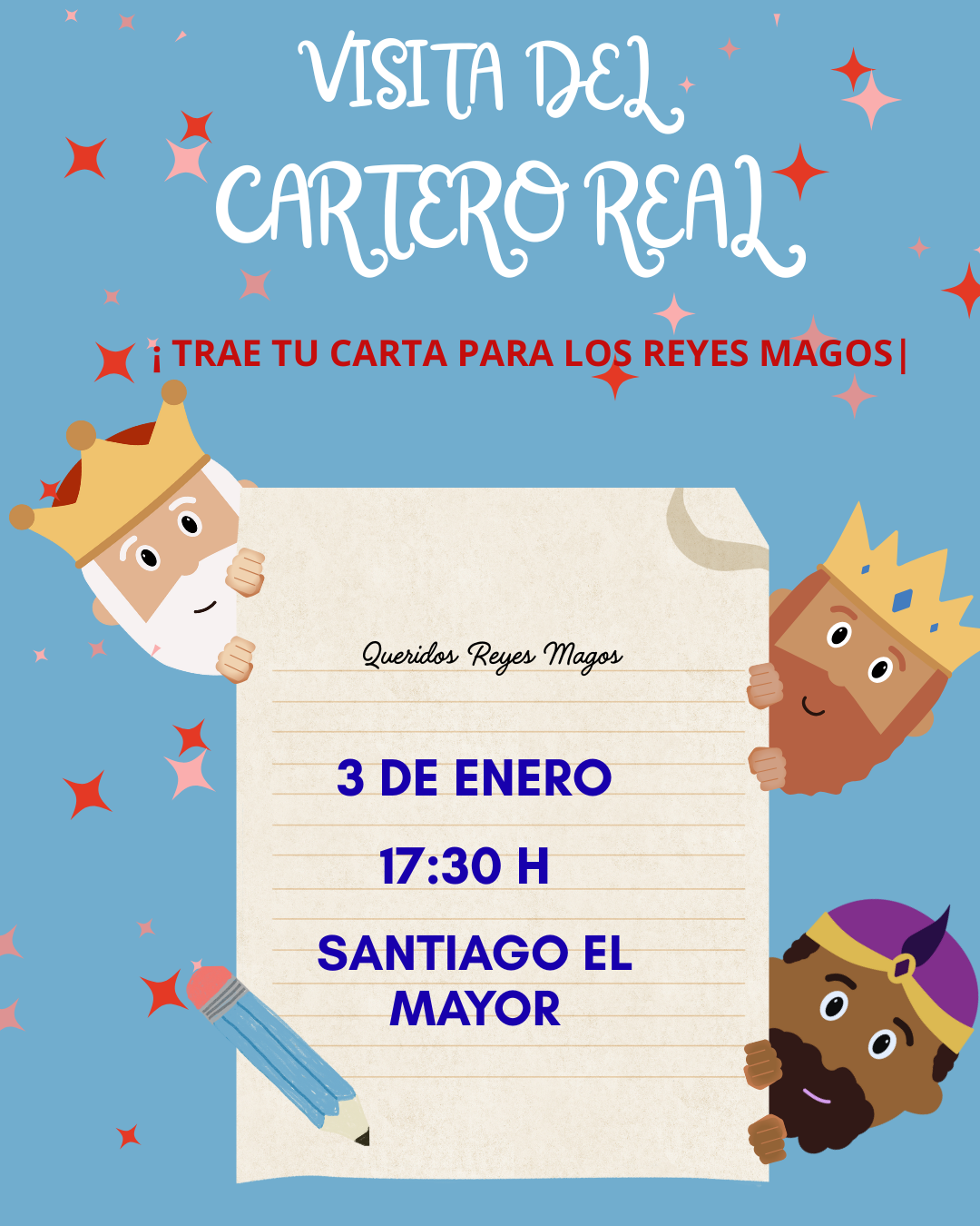 🔉 El sábado 3 de enero a las 17:30 h, nos visitará el cartero real; os esperamos en nuestro local social de Santiago el Mayor para una tarde inolvidable.